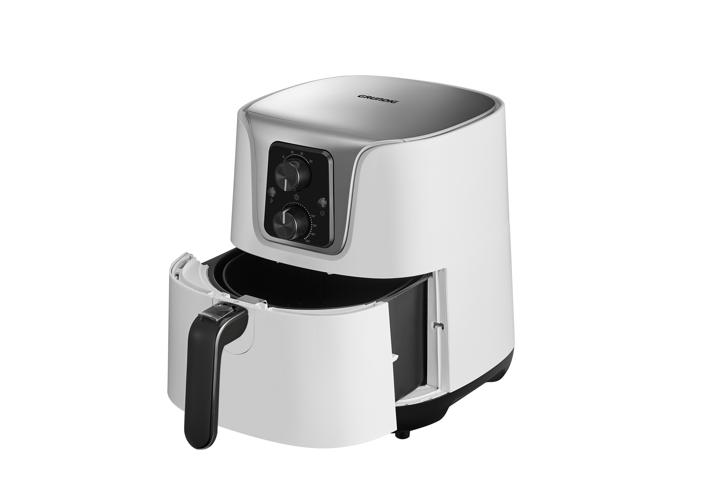 Die Zeiten der klassischen Fritteusen, die bis zu drei Liter Öl oder Fett zum Frittieren benötigen, neigen sich dem Ende zu. Heute weiß man, dass die Unmengen an pflanzlichen Ölen oder tierischen Fetten beim Frittieren nicht nur ungesund und schwer verdaulich, sondern mittlerweile auch schlichtweg unnötig sind: Möglich machen das neue Produkte wie die Grundig Heißluftfritteuse FRY 6840. Anders als ihre Vorgänger setzt die Küchenhilfe beim Frittieren auf nur wenige Tropfen Öl – den Rest übernimmt ganz einfach heiße Luft – und erreicht damit ebenso rasche und knackige Ergebnisse.
