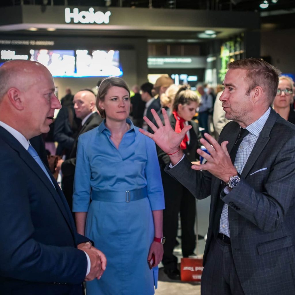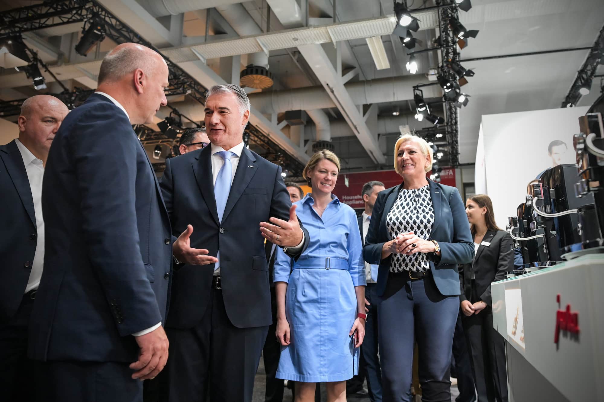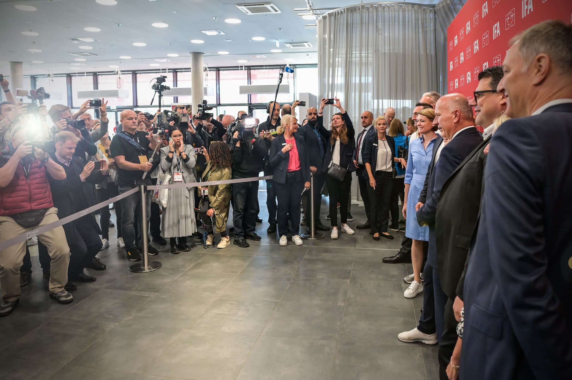 Die Opening Tour gehört zur IFA wie Funkturm, Sommergarten oder die Show Stoppers. In diesem Jahr mit dabei: Berlins regierender Bürgermeister Kai Peter Wegner, die Wirtschaftssenatorin Franziska Giffey sowie von der IFA-Veranstalterin gfu Geschäftsführerin Dr. Sara Warneke, Aufsichtsratsvorsitzender Philipp Maurer und Leif-Erik Lindner, der ab 1. Oktober 2023 neuer Geschäftsführer der IFA Management GmbH wird und damit die Jubiläums-IFA 2024 verantwortet. (alle Fotos: gfu)