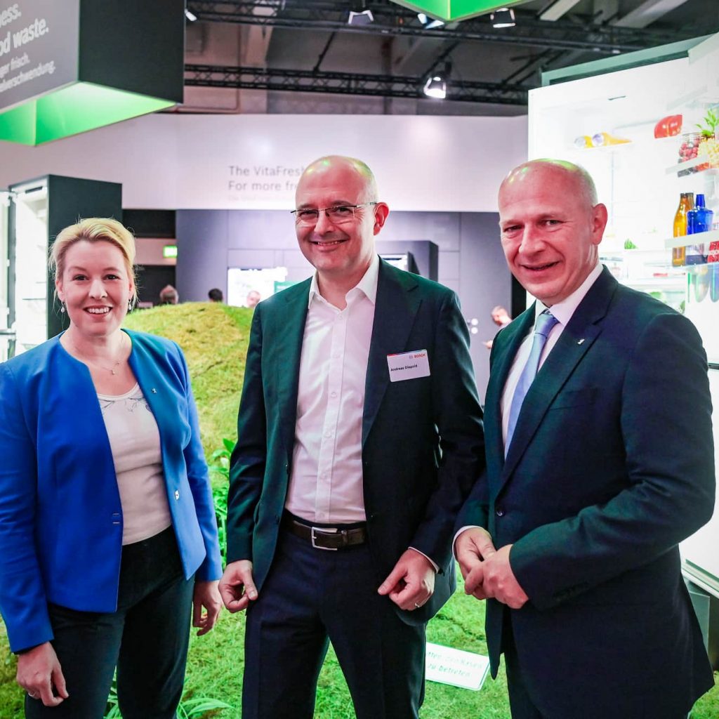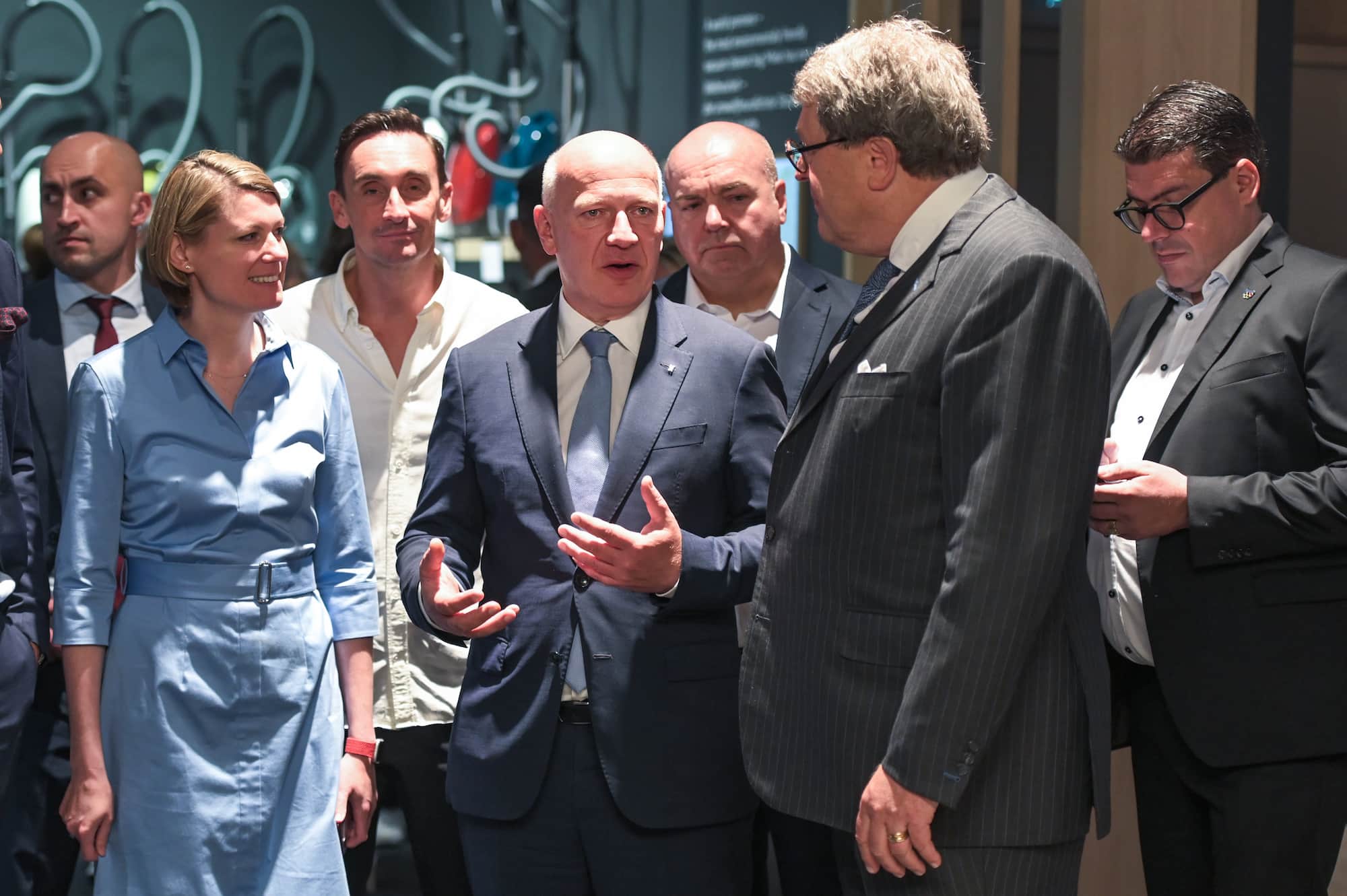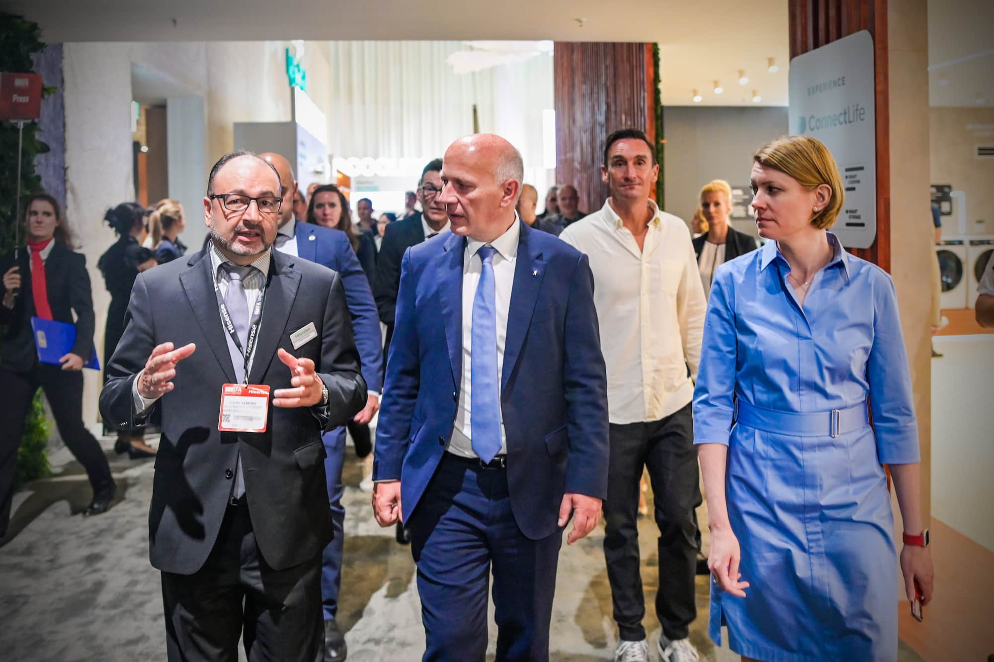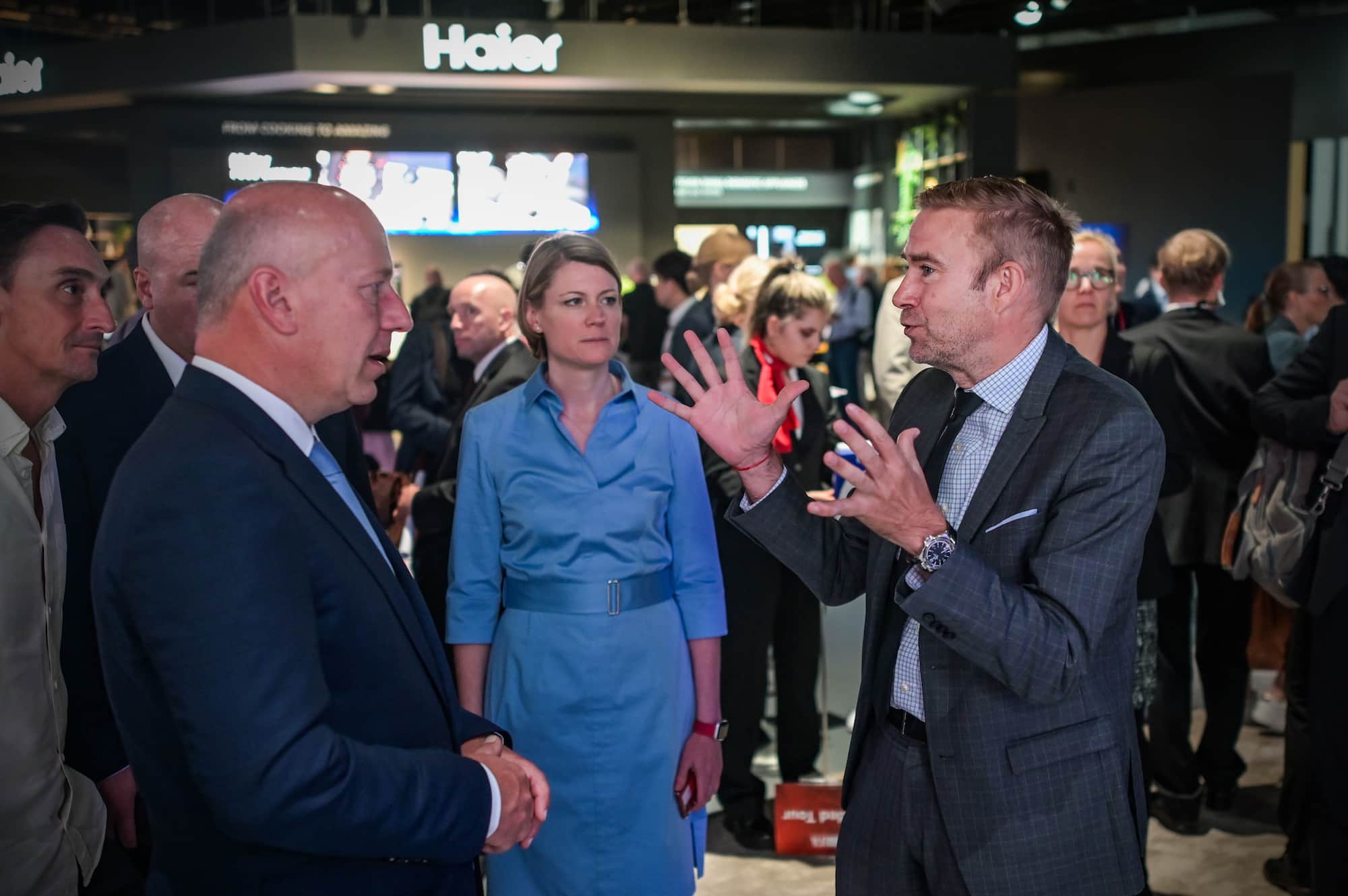 Die Opening Tour gehört zur IFA wie Funkturm, Sommergarten oder die Show Stoppers. In diesem Jahr mit dabei: Berlins regierender Bürgermeister Kai Peter Wegner, die Wirtschaftssenatorin Franziska Giffey sowie von der IFA-Veranstalterin gfu Geschäftsführerin Dr. Sara Warneke, Aufsichtsratsvorsitzender Philipp Maurer und Leif-Erik Lindner, der ab 1. Oktober 2023 neuer Geschäftsführer der IFA Management GmbH wird und damit die Jubiläums-IFA 2024 verantwortet. (alle Fotos: gfu)