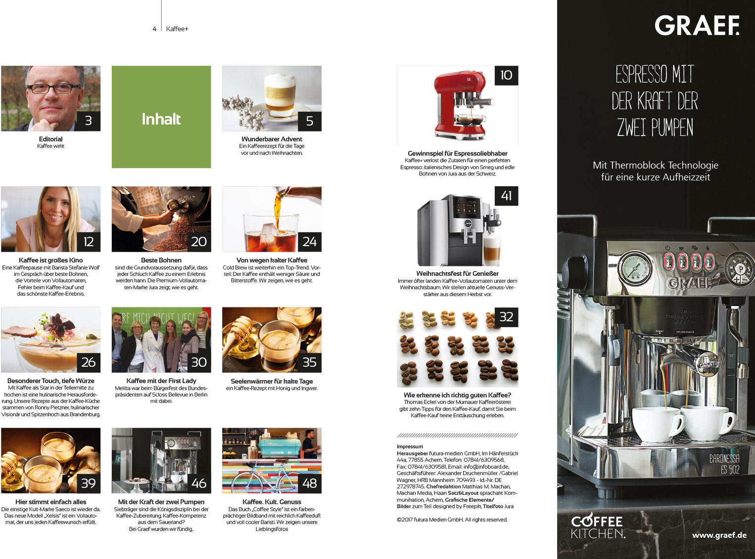 kaffee-plus-2018-kaffeemagazin-doppelseiten 5Dazu servieren wir aktuelle Technik und Trends wie Cold Brew, Filter und Siebträger, Wissen und Lifestyle, ein Wohlfühl-Menü für die Festtage mit reichlich Kaffeeduft in der Tellermitte und köstliche Wohlfühl-Drinks für die Adventszeit.
