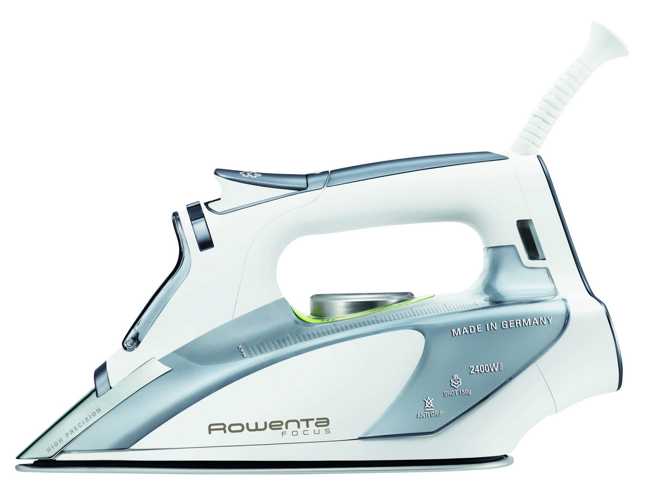 meisten Menschen sind froh, wenn sie ihre Wäsche innerhalb möglichst kurzer Zeit perfekt glätten können. Damit das funktioniert, sind eine einfache Bedienung und eine verlässliche Leistung des Bügeleisens wichtig. Das Focus überzeugt hier mit hilfreichen Details: Mit den neuen ergonomischen Bedienschaltern lässt sich die perfekte Bügeltemperatur schnell und präzise einstellen. Dank leistungsstarker 2.400 Watt erbringt das neue Dampfbügeleisen eine noch bessere Dampfleistung als sein Vorgänger. Der transparente Tank fasst 300 ml und zeigt den Wasserstand millilitergenau an. Die kratzfeste und laserbehandelte Microsteam 400 Bügelsohle gleitet sanft über den Stoff und sorgt mit 400 Dampflöchern für die perfekte Dampfverteilung.