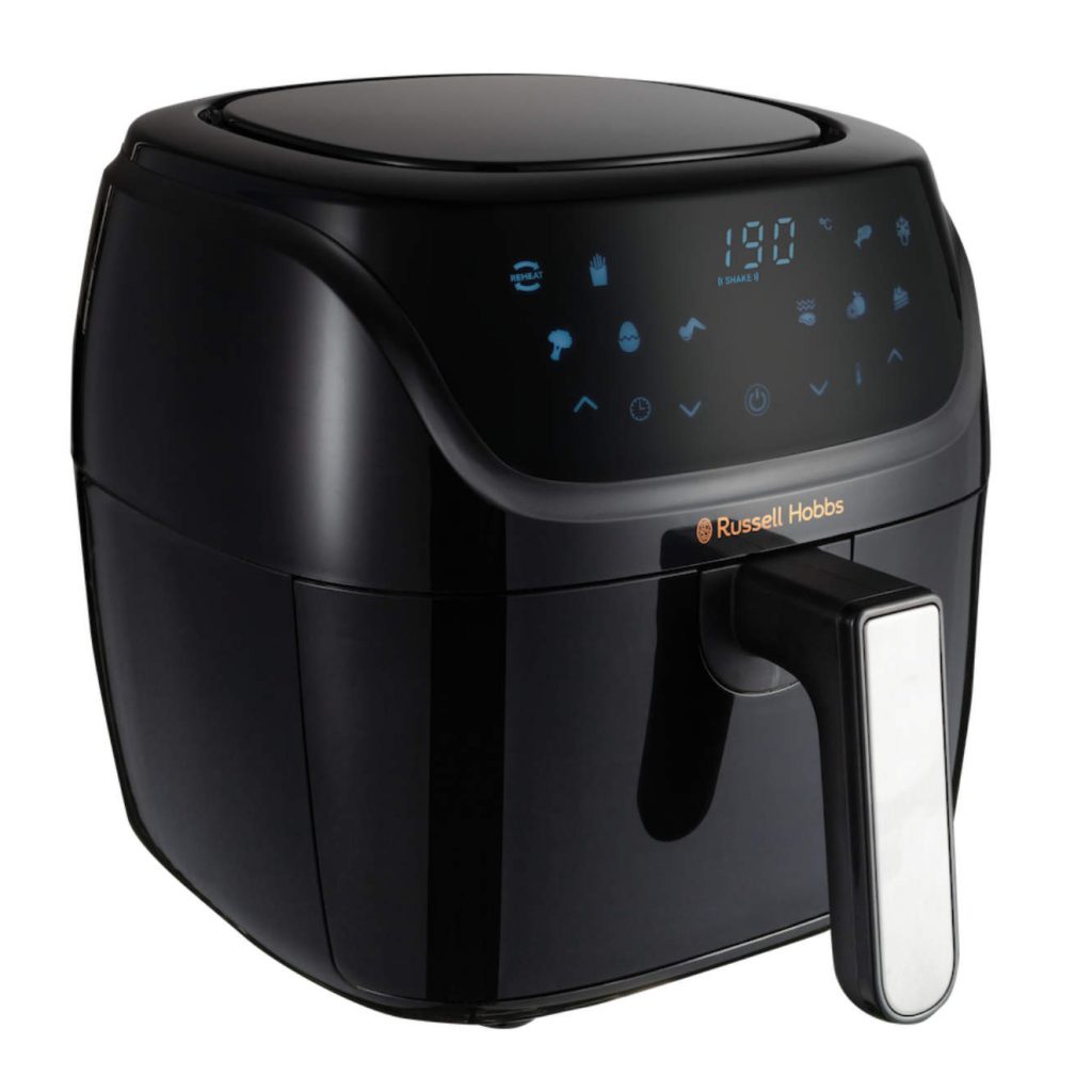 - Leicht zu reinigendes digitales Touchscreen-Bedienfeld mit 7 voreingestellten Kochfunktionen: – Pommes Frites – Koteletts – Garnelen – Huhn – Steak – Fisch – Backen