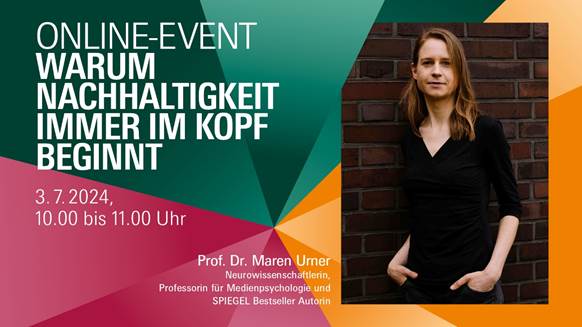 Wie können wir zukünftig in allen Lebensbereichen radikal umweltbewusst handeln? Was braucht es, um grundlegende Veränderungen dauerhaft zu etablieren? Wissenschaftliche Erkenntnisse und psychologische Ansätze zu diesem Thema präsentiert die Neurowissenschaftlerin und Spiegel-Bestsellerautorin Prof. Dr. Maren Urner am 3. Juli 2024 von 10 bis 11 Uhr