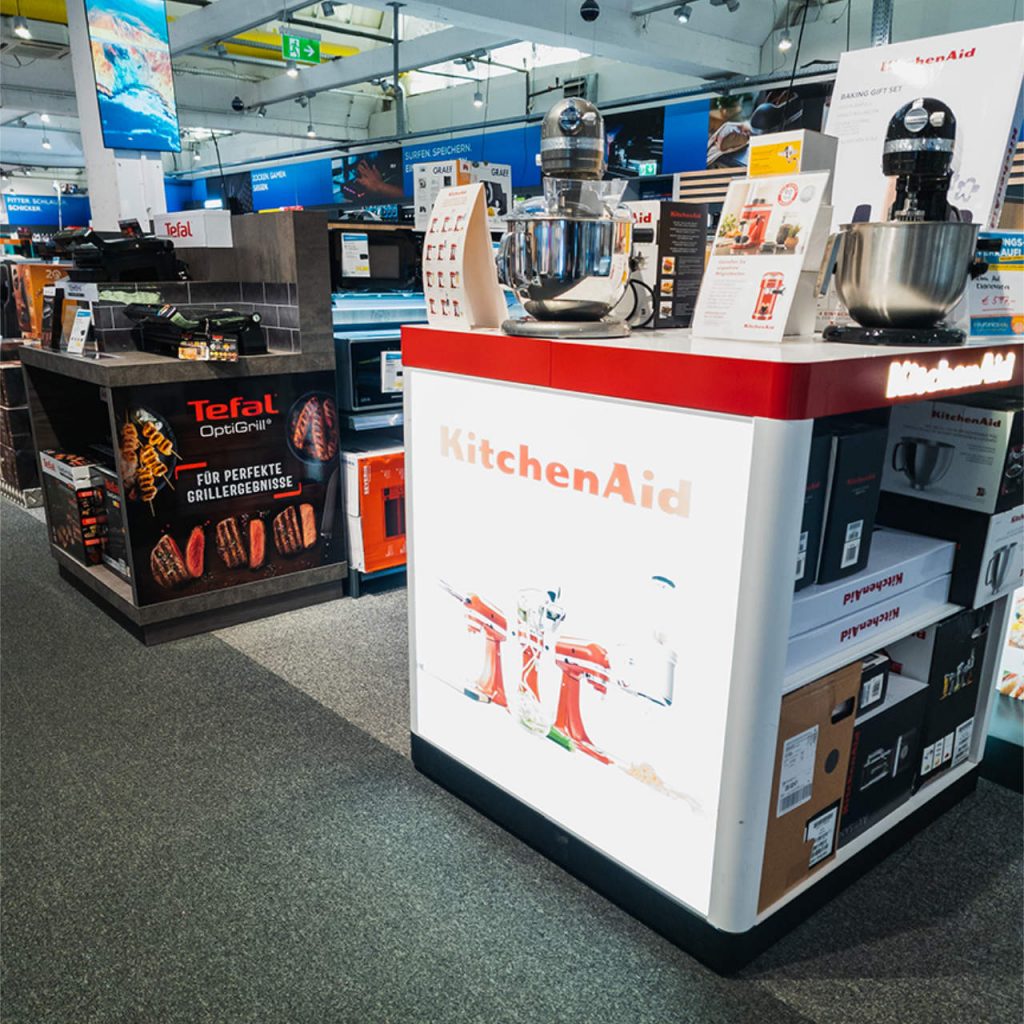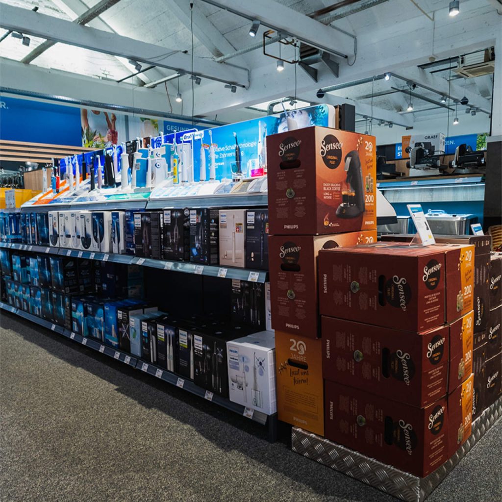 Den Elektrogroßgeräten wie dem Thema Einbau stehen jetzt signifikant mehr Fläche zur Verfügung. Bei den Kleingeräten gab es ein „Flächen-Upgrade“ u.a. für Akku-Stielsauger, Saugroboter, Siebträger und Kaffeevollautomaten sowie die Themen Wellness und Gesundheit.