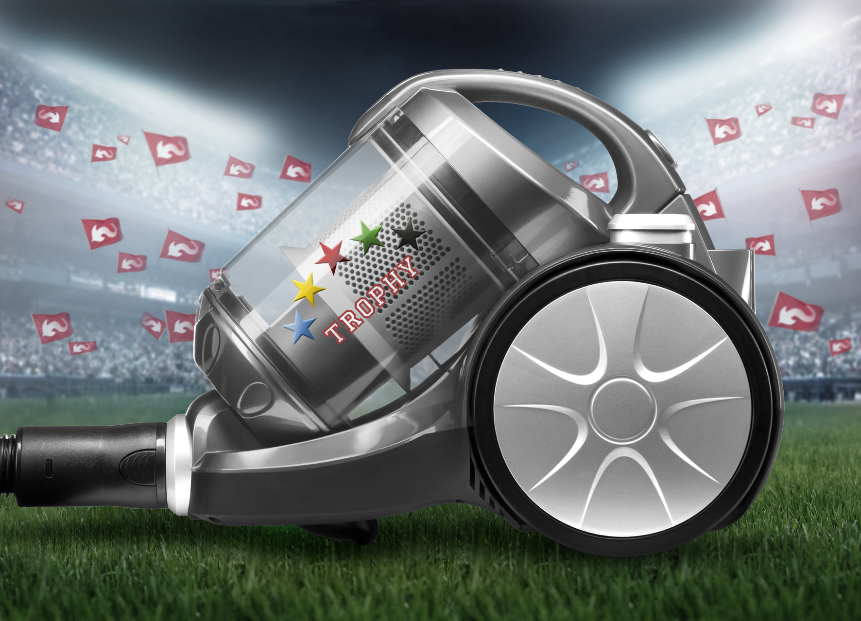Dirt Devil M2819 Trophy, aufgrund des großen Erfolges lädt Dirt Devil mit diesem Sondermodell zum Mitfeiern ein – für einen Heimsieg gegen den Staub! 2011 verkaufte Dirt Devil in Deutschland 400000 beutellose Staubsauger – ein starker Beleg für die Qualität und Erfahrung von Dirt Devil, gerade auch bei beutellosen Staubsaugern. Überzeugende Leistungsdaten, hochwertige Technik und umfangreiches Zubehör kennzeichnen den attraktiv gestalteten Cyclone-Staubsauger. Der beutellose Dirt Devil M2819 Trophy ist mit der Cyclone-Technologie ausgestattet und überzeugt mit starker Saugkraft. Der 2000-Watt-Motor füllt den 1,8 Liter fassenden Staubbehälter kraftvoll. Zusammen mit dem waschbaren Vormotorfilter erspart das die Folgekosten für Staubbeutel. Auch die umfangreiche Ausstattung ist ein Grund zum Feiern: Zusätzlich zur umschaltbaren Bodendüse, Fugendüse, Möbelpinsel und Parkettbürste bringt das Sondermodell auch die Fellino Tierhaarbürste mit: für die einfache und effiziente Reinigung von Haushalten mit Tieren.