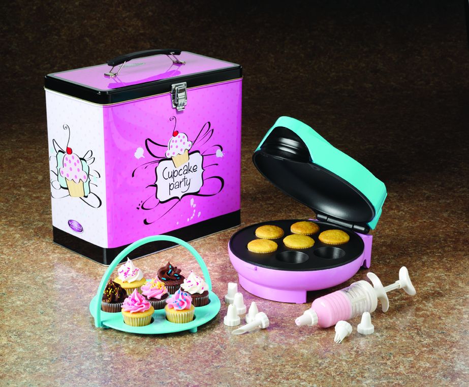 Die kleinen Kuchen wirken auf jedem Kuchenbuffet und eignen sich auch als Zwischenmahlzeit. Auch für kleine Kuchenbäcker bietet der Simeo Cupcakemaker an verregneten Nachmittagen einen willkommenen Zeitvertreib. Aufbewahrt werden der Simeo Cupcakemaker und sein Zubehör in einer wunderschönen Blechdose mit Tragegriff.