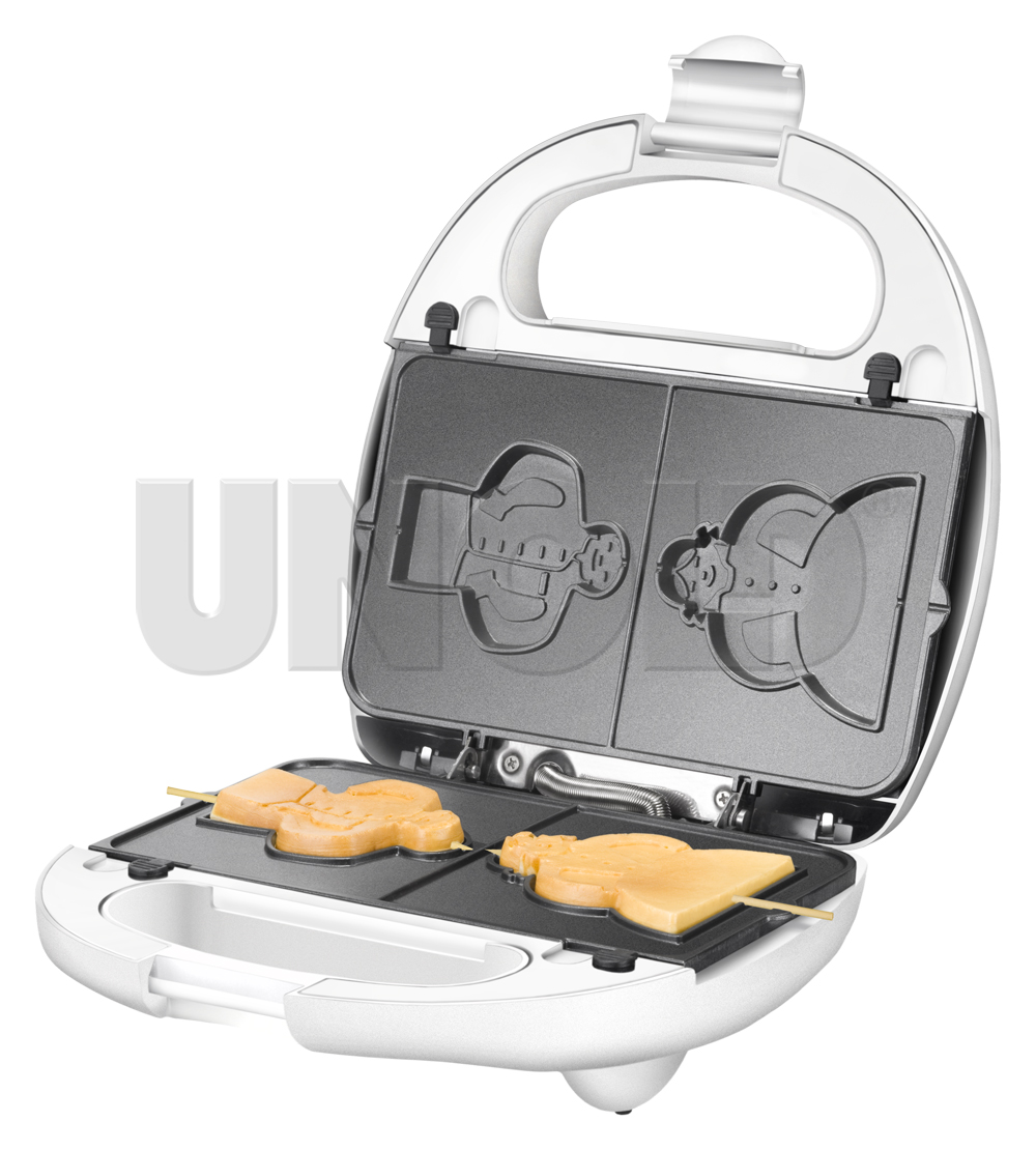 Hockenheim, 3/2010. Waffeln am Stiel? Kein Problem mit dem Multi Snack am Stiel von Unold. Einfach die Wechselplatten-Sets für Donuts oder Waffeln in das Gerät einlegen, Teig einfüllen, Holzstiele einlegen und im Handumdrehen sind die Leckereien fertig. An den spülmaschinenfesten antihaftbeschichteten Aluminium-Druckgussplatten bleibt garantiert nichts hängen. Die Temperatur lässt sich stufenlos regeln, und der Überhitzungsschutz sichert das Gerät vor zu hohen Betriebstemperaturen ab. Der Griff ist wärmeisoliert, so gibt es keine heißen Finger. Das Edelstahlgehäuse ist in der Trendfarbe Weiß lackiert.
