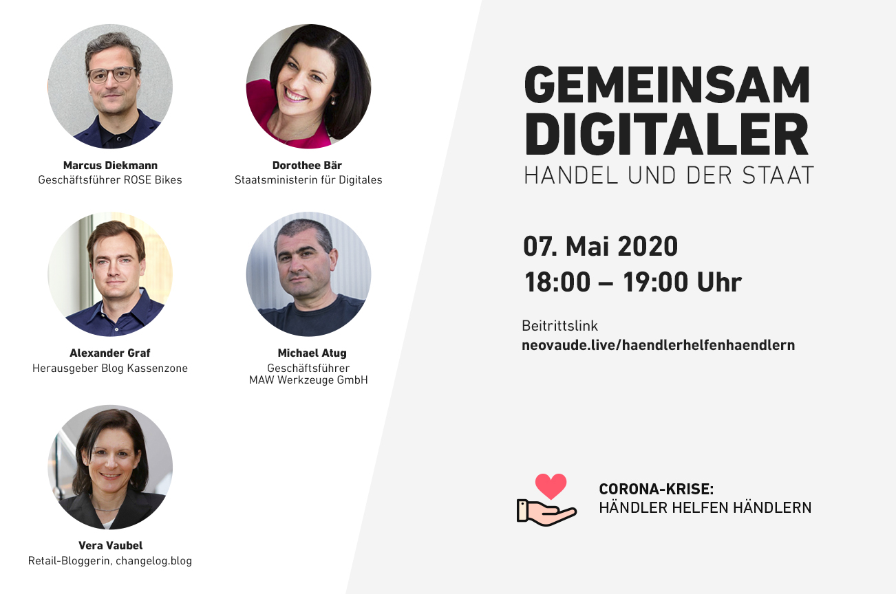 Die Zahl der Follower wird immer größer: Der Digital-Talk der Pro-Bono-Initiative „Händler helfen Händlern“ – infoboard.de gehört zu den Unterstützern der ersten Stunde – geht in die 5. Auflage. Am kommenden Donnerstag (7. Mai um 18.00 Uhr) lautet das Thema „Handel meets Staatsministerin für Digitales“.