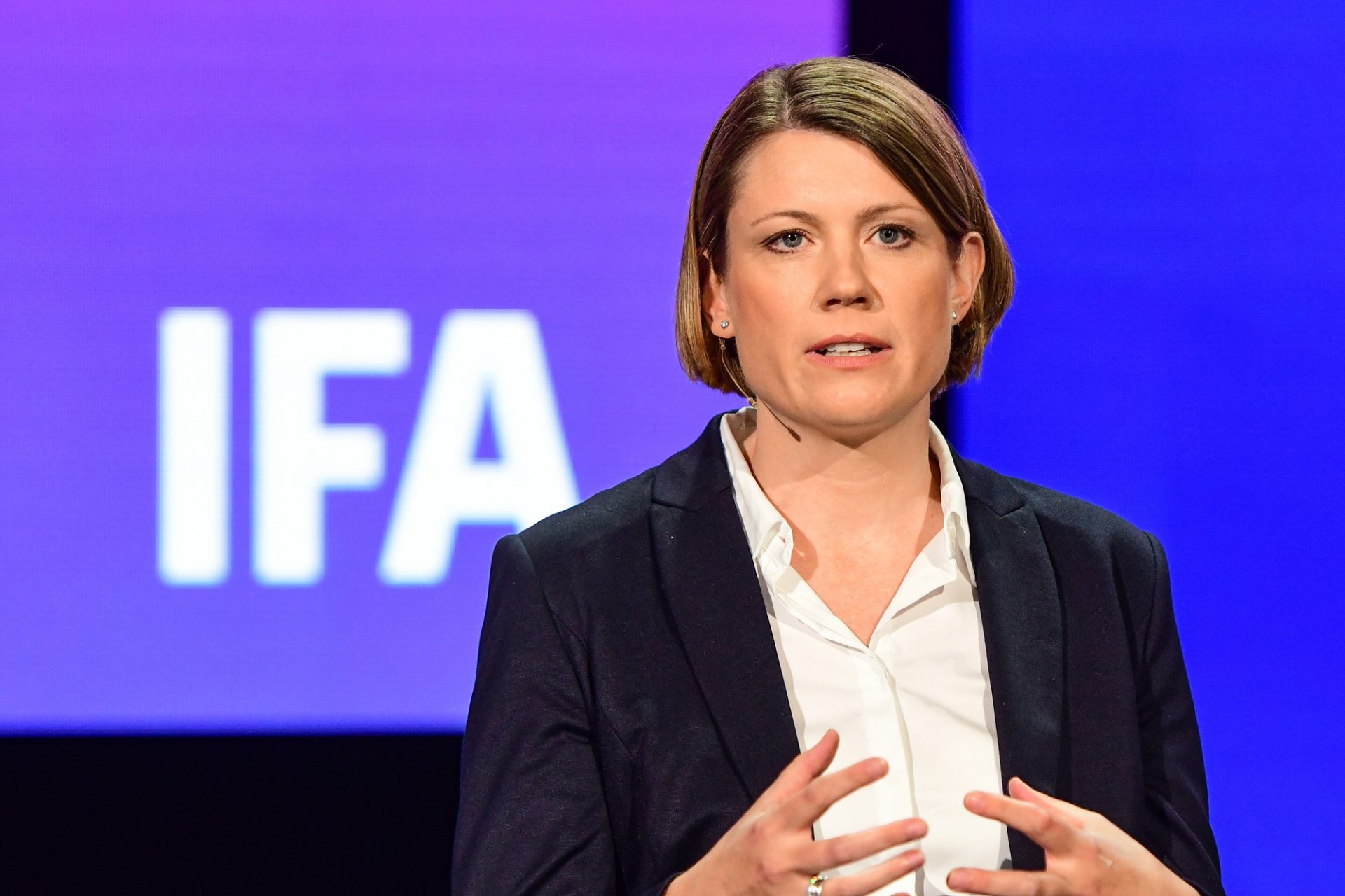 Dr. Sara Warneke, Geschäftsführerin der gfu, anlässlich der Vorstellung der internationalen Studie „The Way Back Home“ der Strategieberatung Oliver Wyman und der gfu Consumer & Home Electronics auf der IFA in Berlin am 5. September.