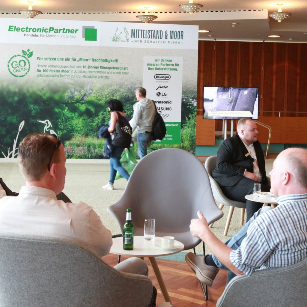 Umwelt- und Klimaschutz waren nicht nur visuell gegenwärtig, sondern standen insgesamt im Fokus des Messeauftritts. „Wir arbeiten intensiv an diversen Stellschrauben, um in der gesamten Verbundgruppe Potenziale für umweltschonenderes Handeln aufzudecken und zu nutzen. Zu unseren größeren Projekten zählen die Unterstützung der Initiative ‚Mittelstand & Moor‘, bei der wir die Wiederbewässerung einer 100 Hektar großen Moorlandschaft finanzieren, und die neue Photovoltaik-Anlage auf unserem rund 7.000 Quadratmeter großen Dach in Düsseldorf“, zählte der Electronic Partner Vorstand auf.