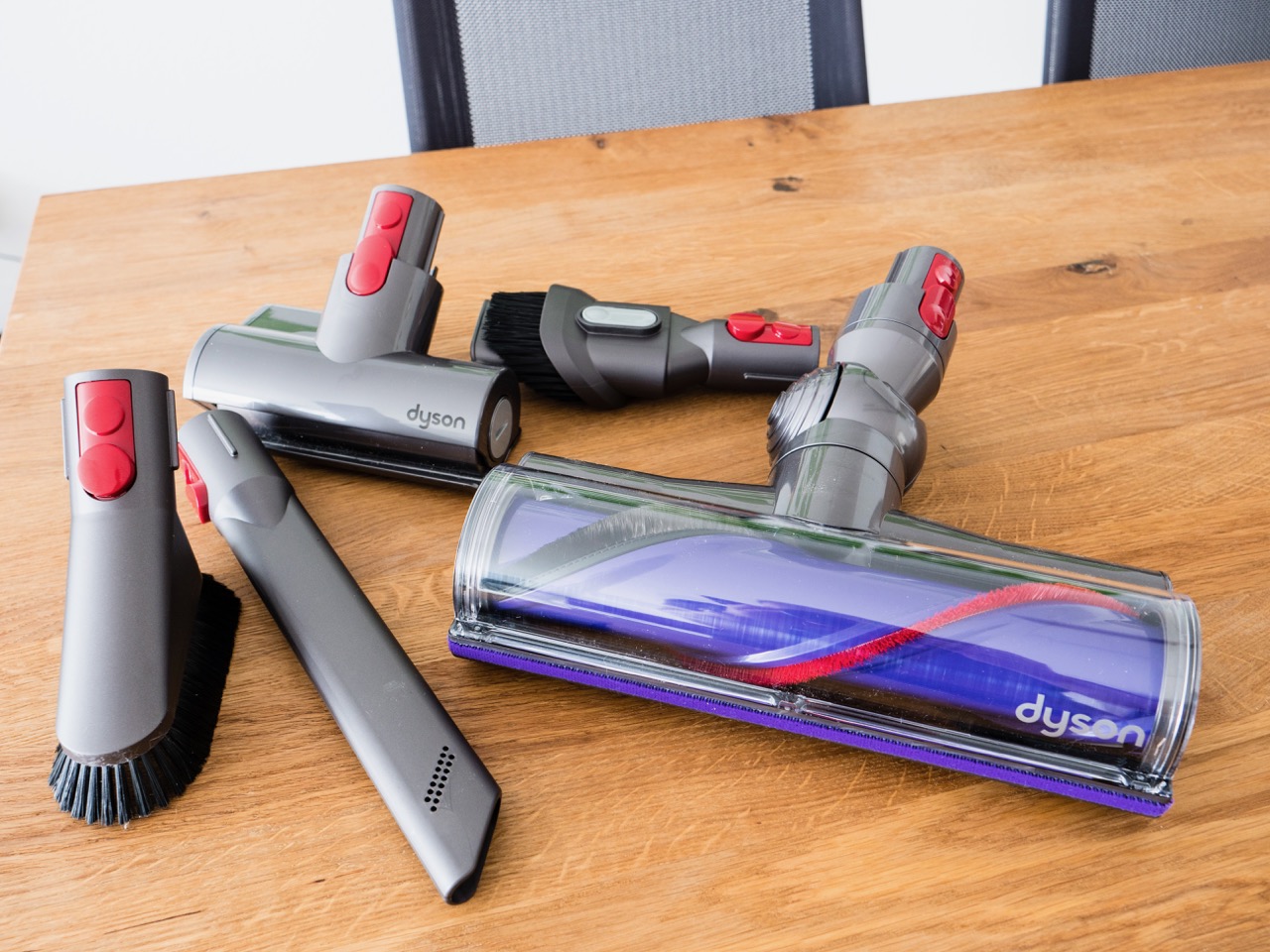 Grundsätzlich bleibt festzuhalten, dass Dyson beim V10 sehr viel richtig gemacht hat. Insbesondere als Käufer der “Absolute”-Variante bekommt man ein Rund-um-sorglos-Paket, in dem alle wichtigen Aufsätze (Kombi-Zubehördüse, Fugendüse, Mini-Elektrobürste, Extra-soft Bürste, Elektrobürste mit Soft-Walze und Elektrobürste mit Direktantrieb) enthalten sind.