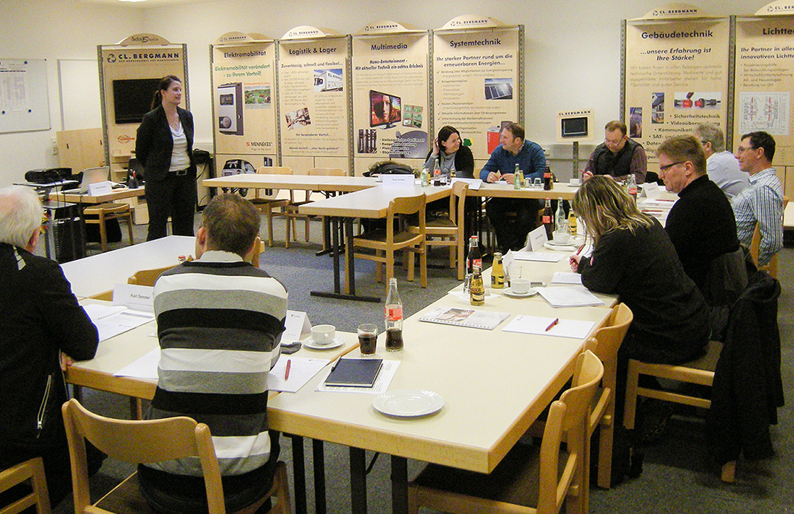 Die e-masters Seminare zeichnen sich durch ihren klaren Praxisbezug aus, denn die erfahrenen Fachreferenten kommen aus der Elektrobranche. Sie kennen den Arbeitsalltag in den Unternehmen und damit den Bedarf der Teilnehmer. Die Kooperation erreicht mit dem zielgerichteten Themenangebot alle Beschäftigten in den Elektro-Fachbetrieben, vom Innendienst im Büro über die Obermonteure bis hin zur Geschäftsführung oder zu den Auszubildenden.
