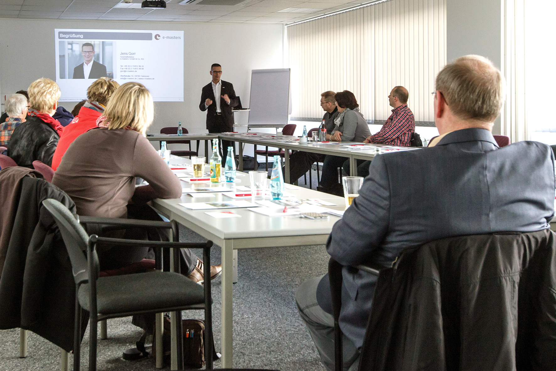 Auch in diesem Jahr war die e-masters Kooperation bei ihren Mitgliedern in der Region unterwegs. Zusammen mit den jeweiligen Mitegro-Fachgroßhandlungen organisierte das Team aus Hannover bundesweite e-masters Unternehmertage. An insgesamt 18 Standorten besuchten über 700 Personen die informativen Veranstaltungen. Schwerpunktthema der Tagungen war die Anwendung der Online-Bestellplattform des Marketing-Konfigurators. Über dieses Medium können die e-masters Mitglieder Werbemittel und Marketingmaßnahmen anfordern. Weiter wurden die vielen Möglichkeiten zur regionalen Positionierung des Elektro-Fachbetriebes als „Local Hero“ aufgezeigt, die sich u. a. mit der e-masters Initiative „intelligent modernisieren“ bieten.