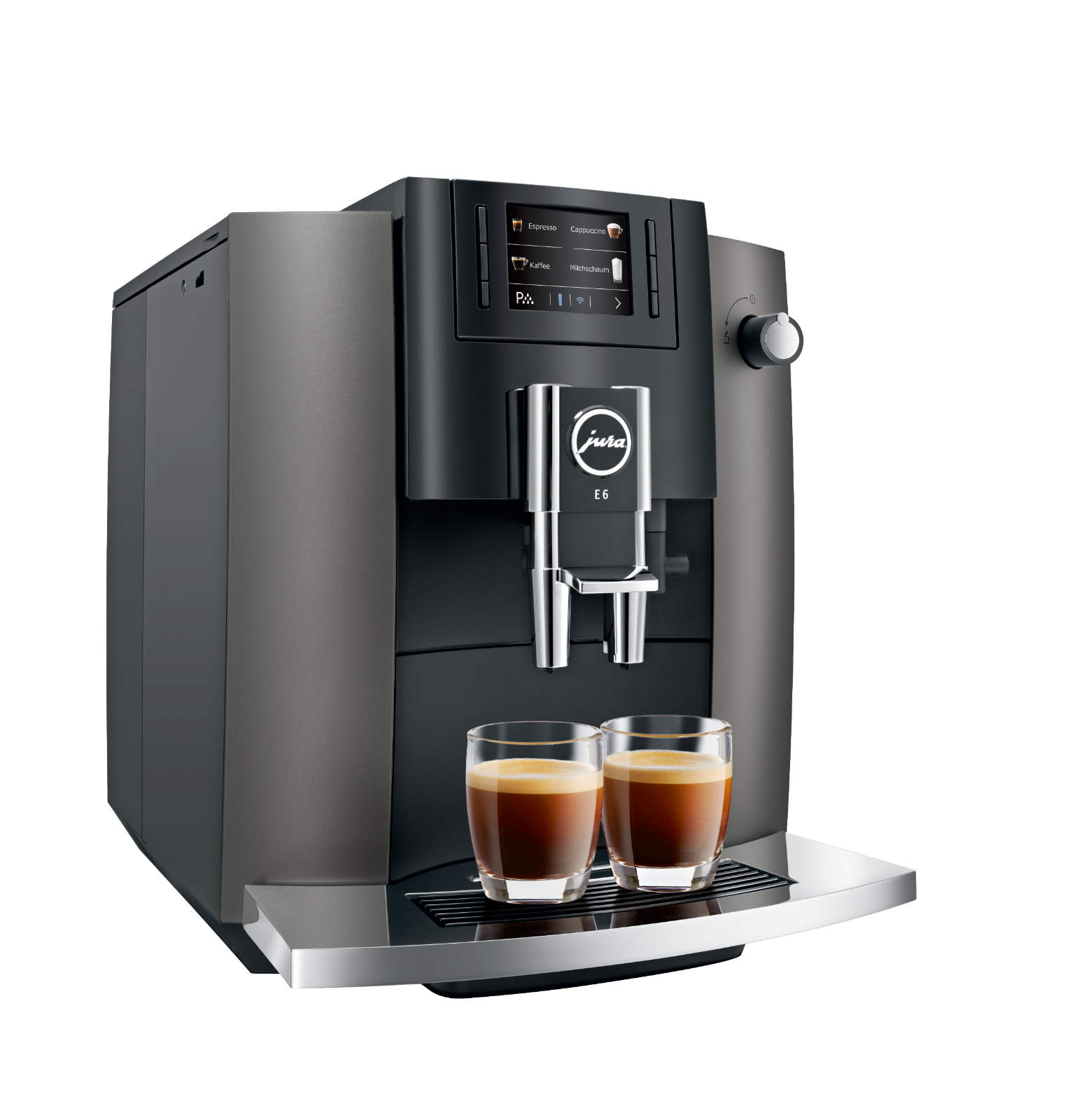 Ebenfalls mit Neuheiten aufwarten kann die E6. Auch sie zeichnet sich durch eine besonders einfache Bedienung, ein hervorragendes Kaffeeresultat und ein klares Design aus. Frontal angeordnete Tasten und ein zeitgemäßes Farbdisplay führen auf direktem Weg zum Ziel. Insgesamt elf Spezialitäten stehen jetzt bereit. Ab sofort wird die klare Designsprache der E6 von Jura mit einer neuen verchromten Tassenplattform in besonderer Farbgebung noch stärker betont: In der Variante „Dark Inox“ bringt der Vollautomat seine optischen Vorzüge vorzüglich zum Vorschein. Unser Fazit: Sowohl die S8 wie die E6 von Jura erfüllen unsere individuellen Wünsche als Kaffeeliebhabers mit echten Ausstattungs-Upgrade – für jeden Geschmack und jeden Geldbeutel.