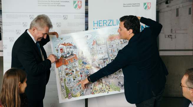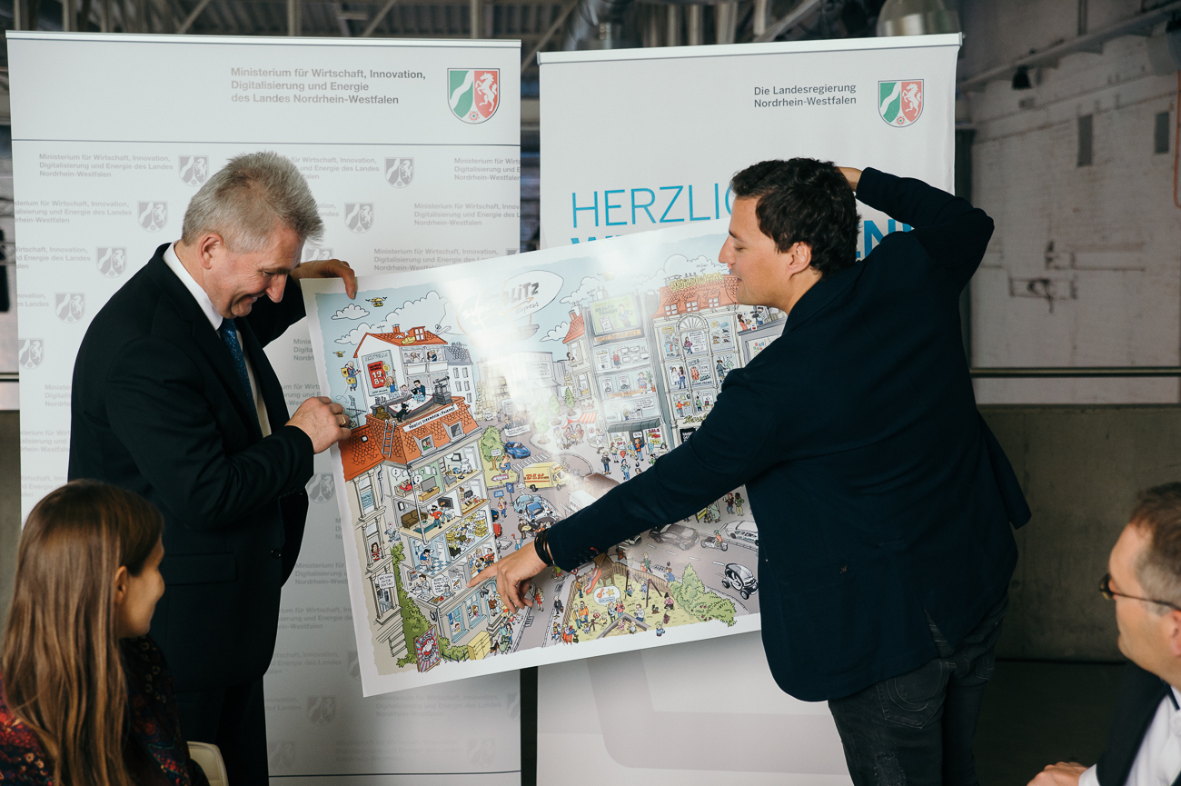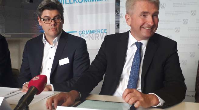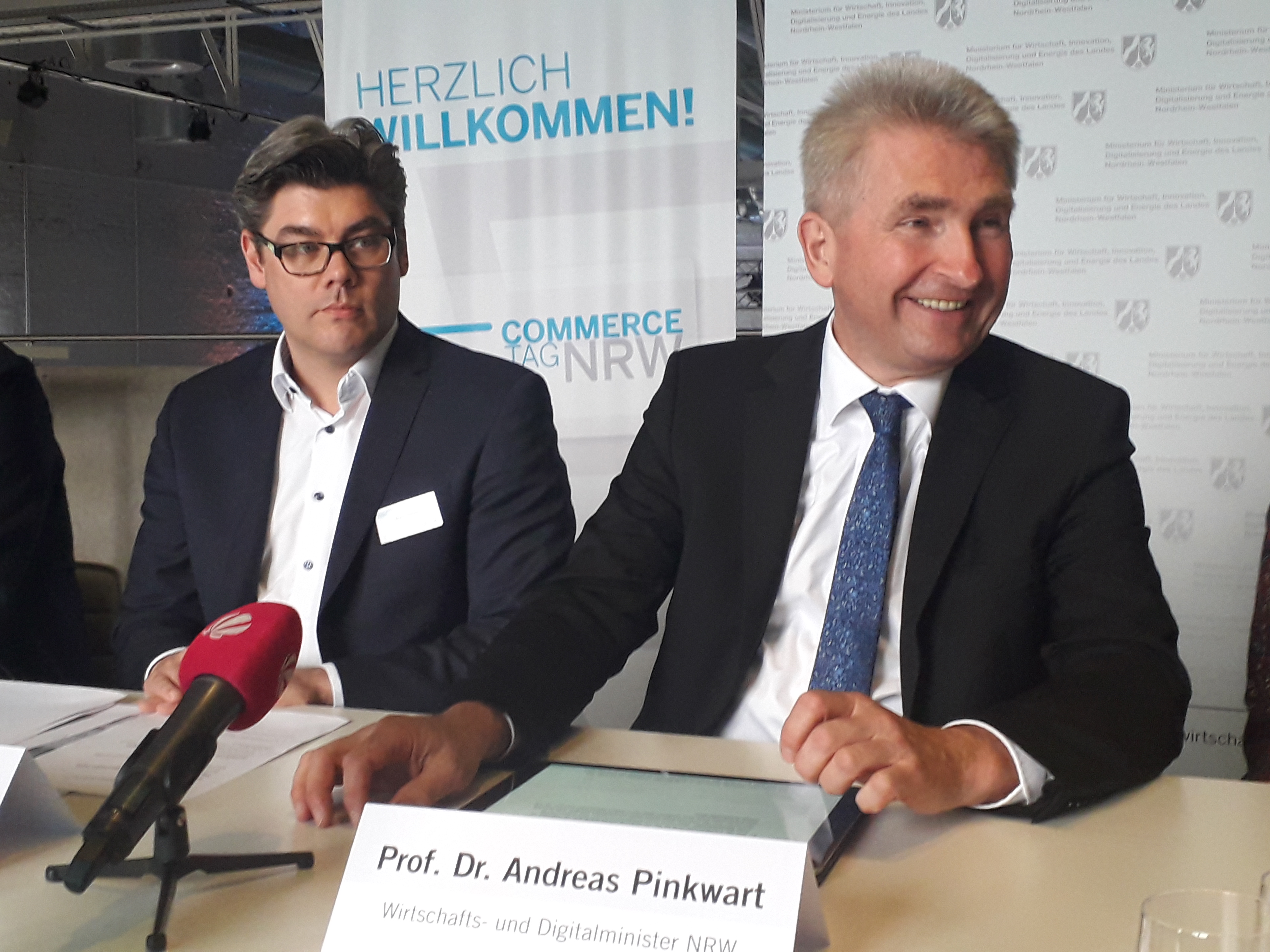 Zurück in die Gegenwart: Angetrieben von der Digitalisierung durchläuft der Einzelhandel einen tiefgreifenden Strukturwandel: der Onlinehandel wächst, gleichzeitig nimmt die Urbanisierung mit Vehemenz zu. Welche Zukunftsszenarien ergeben sich daraus für den Handel? Und wie lässt sich der digitale Wandel erfolgreich gestalten? Über diese Fragen tauschten sich im Kölner „New Yorker Dock.One“ Vertreterinnen und Vertreter aus Handel, Politik, Wirtschaft und Verbänden mit Wirtschafts- und Digitalminister Pinkwart einen Nachmittag lang aus. Pinkwart: „Ziel ist es, die Zukunftsfähigkeit des Einzelhandels zu stärken. Die Städte und Geschäfte werden sich verändern. Aber ich bin mir sicher, dass ein lebendiger und attraktiver Einzelhandel auch im Jahr 2030 die Menschen in die Geschäfte ziehen wird.“