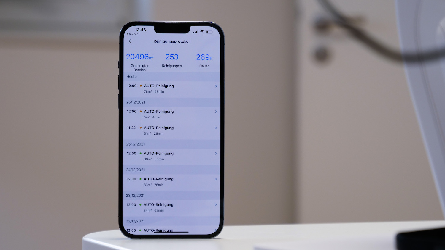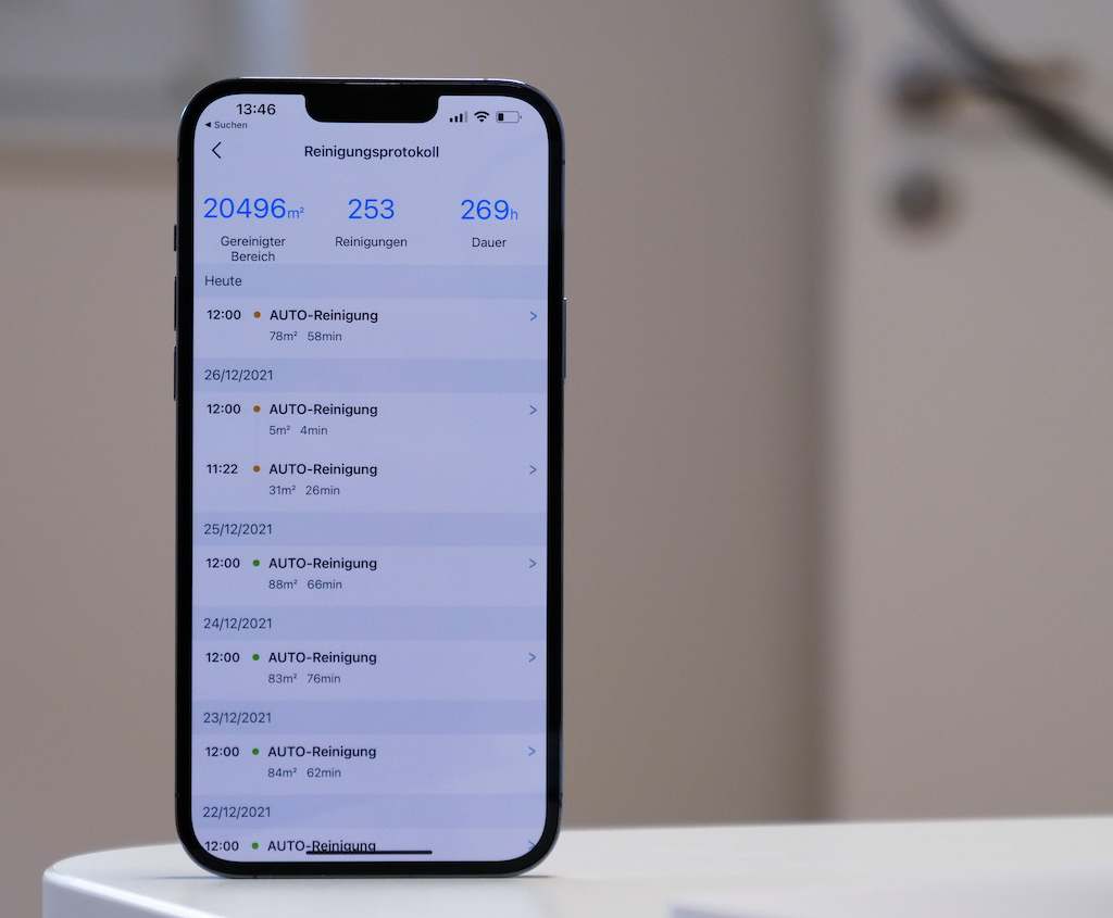 Anders sieht die Sache aus, wenn man schon einen T8 besitzt. Bei uns läuft dieser im Obergeschoss und hat inzwischen in 421 Reinigungen über 30.000 Quadratmeter gesaugt. Probleme mit der Navigation oder Hinderniserkennung gab es bislang nie – und da wir auch dort keinen Teppichboden haben, spielt die maximale Saugkraft nur eine untergeordnete Rolle.