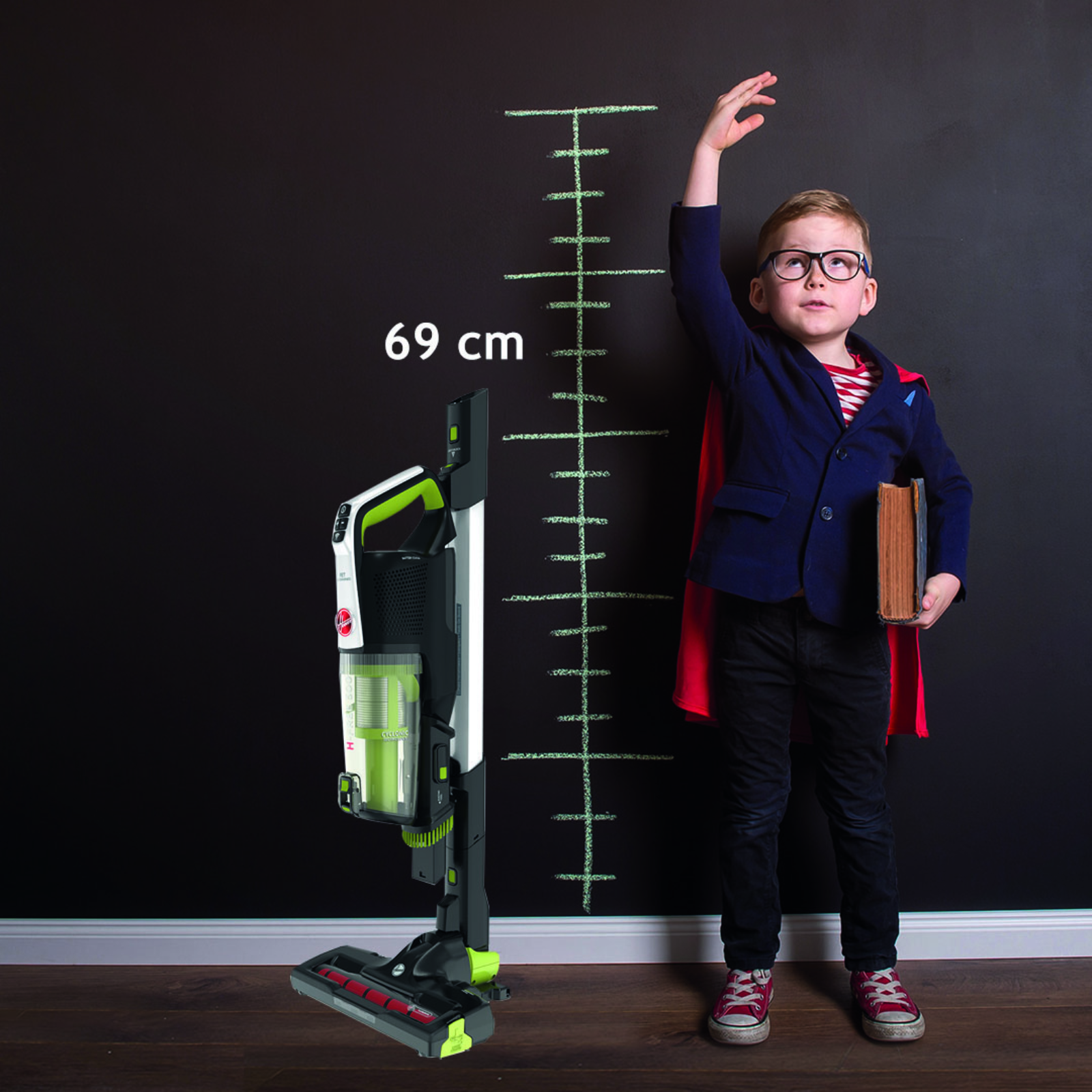 Mit gerade einmal 69 cm Höhe ist der kabellose Hover ein Zwerg nach getaner Arbeit, der sich überall mühelos verstauen lässt.