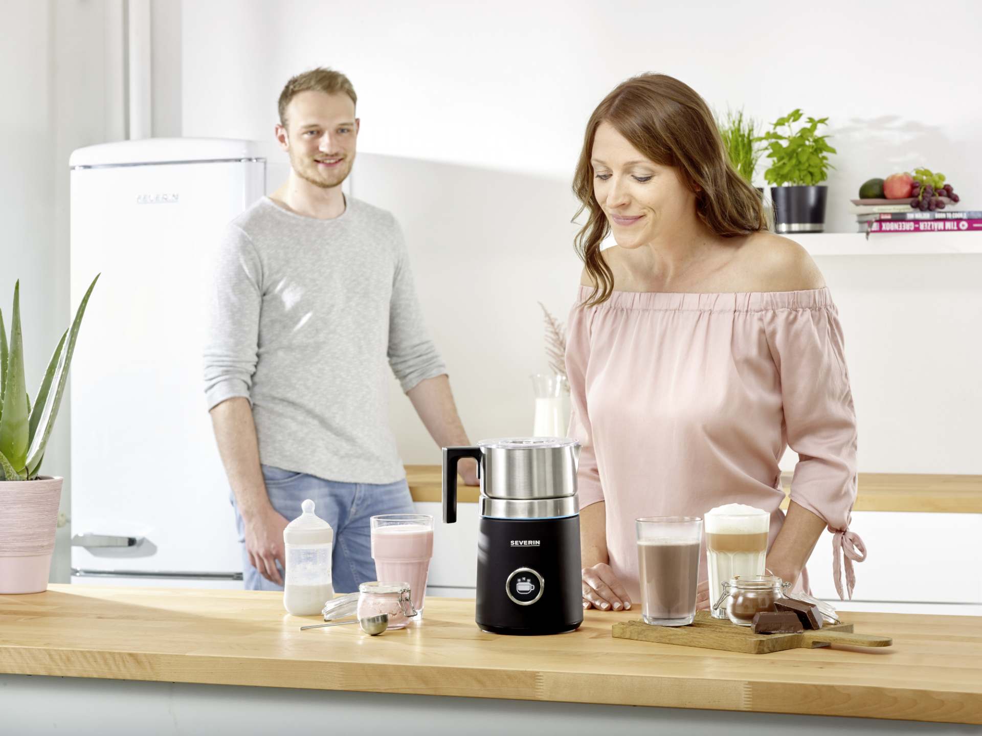 Der Blick ins Supermarkt-Kühlregal verrät: Milch gibt es immer noch, mal in der klassischen Variante, mal lactosefrei. Daneben haben sich indes viele Alternativen breit gemacht, die sich zwar lebensmittelrechtlich nicht Milch nennen dürfen, aber als Soja-, Cashew-, Dinkel, Reis- oder Hafer-Drink genau dieses suggerieren. Kein Problem für den Spuma 700 Plus von Severin: Ausgestattet mit 13 unterschiedlichen Programmen hat er immer die richtige Lösung parat und liefert zuverlässig optimalen Schaum. Extra Programme für heiße Schokolade, Protein-Shakes oder gar Babynahrung aus Milchpulver machen ihn zum vielseitigen All-tagshelfer.