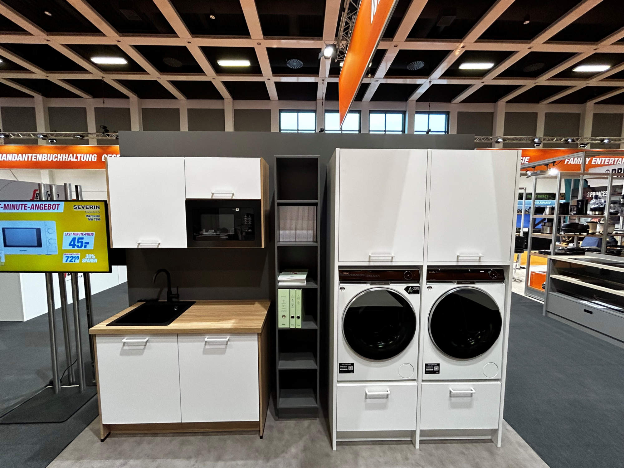 Wir haben während unserer Frühjahrstagung im Rahmen der KOOP nicht nur eine Küchenzeile präsentiert, sondern thematisch den Hauswirtschaftsraum sowie eine Pantry- und Küchenzeile in einem Blockmodul vorgestellt. Das Konzept ist aus einem Arbeitskreis mit expert-Gesellschaftern entstanden und soll für alle interessierten expert-Standorte zugänglich gemacht werden.