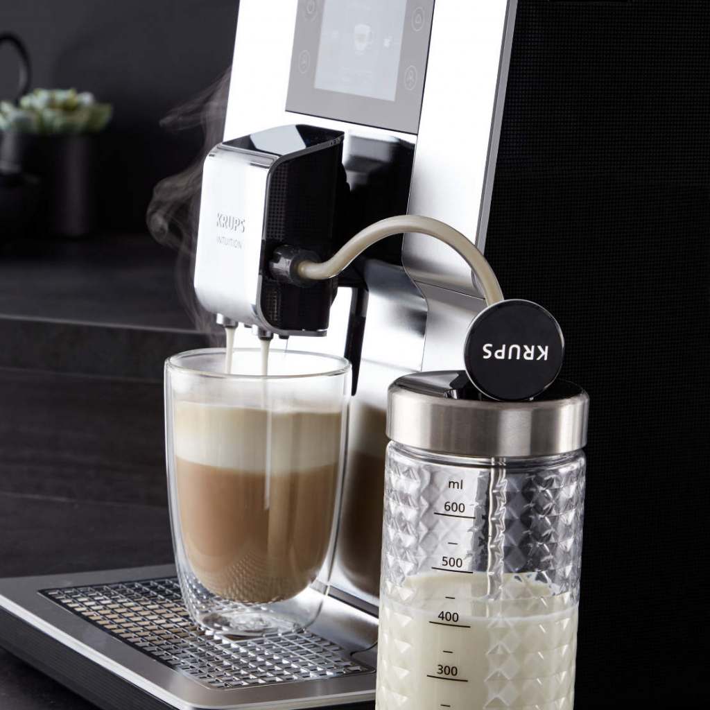 Die erweiterten Personalisierungsmöglichkeiten des neuen Kaffeevollautomaten von Krups erlauben Nutzern freien Lauf bei der Kreation ihrer Kaffeegetränke. Denn die Geschmäcker sind ja unterschiedlich, vor allem bei Kaffee: Die Einen mögen den süßlichen Geschmack der Milch im Latte Macchiato, andere lieben die Ausgeglichenheit in einem Cappuccino. Dank des intuitiven Touchscreens kann der Verbraucher die Einstellungen ganz nach persönlichem Geschmack ändern und dadurch die Kaffeestärke, das Kaffee- und Milchverhältnis individuell einstellen. Bei einer gemeinsamen Kaffeepause zu zweit können Nutzer auch zwei Getränke gleichzeitig zubereiten lassen, natürlich auch Cappuccino und Latte Macchiato.