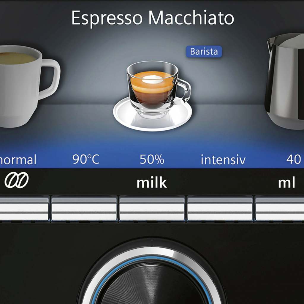 „Auch, wenn das traditionelle Kaffeefiltern von Hand seine Liebhaber hat, das Gros der Käuferinnen und Käufer entscheidet sich für einen Kaffeevollautomaten“, sagt Irle. Die Vorzüge liegen auf der Hand: Perfekt und im Nu auf Barista-Level zubereitete Kaffee- & Milchspezialitäten: wie wäre es am Morgen mit einem intensiven Café Crème, Cappuccino oder einem Latte Macchiato einfach per Fingertipp auf dem farbigen Touchdisplay und nach dem persönlich hinterlegten Lieblingsprofil zubereitet – genau so, wie man seinen Muntermacher mag. Nach dem Mittagessen oder am Nachmittag einen doppelten Espresso und nach dem Abendessen einen Espresso leggero oder vielleicht auch decaffeinato, der dann mit einer zweiten, koffeinfreien Bohnensorte aufgebrüht wird.