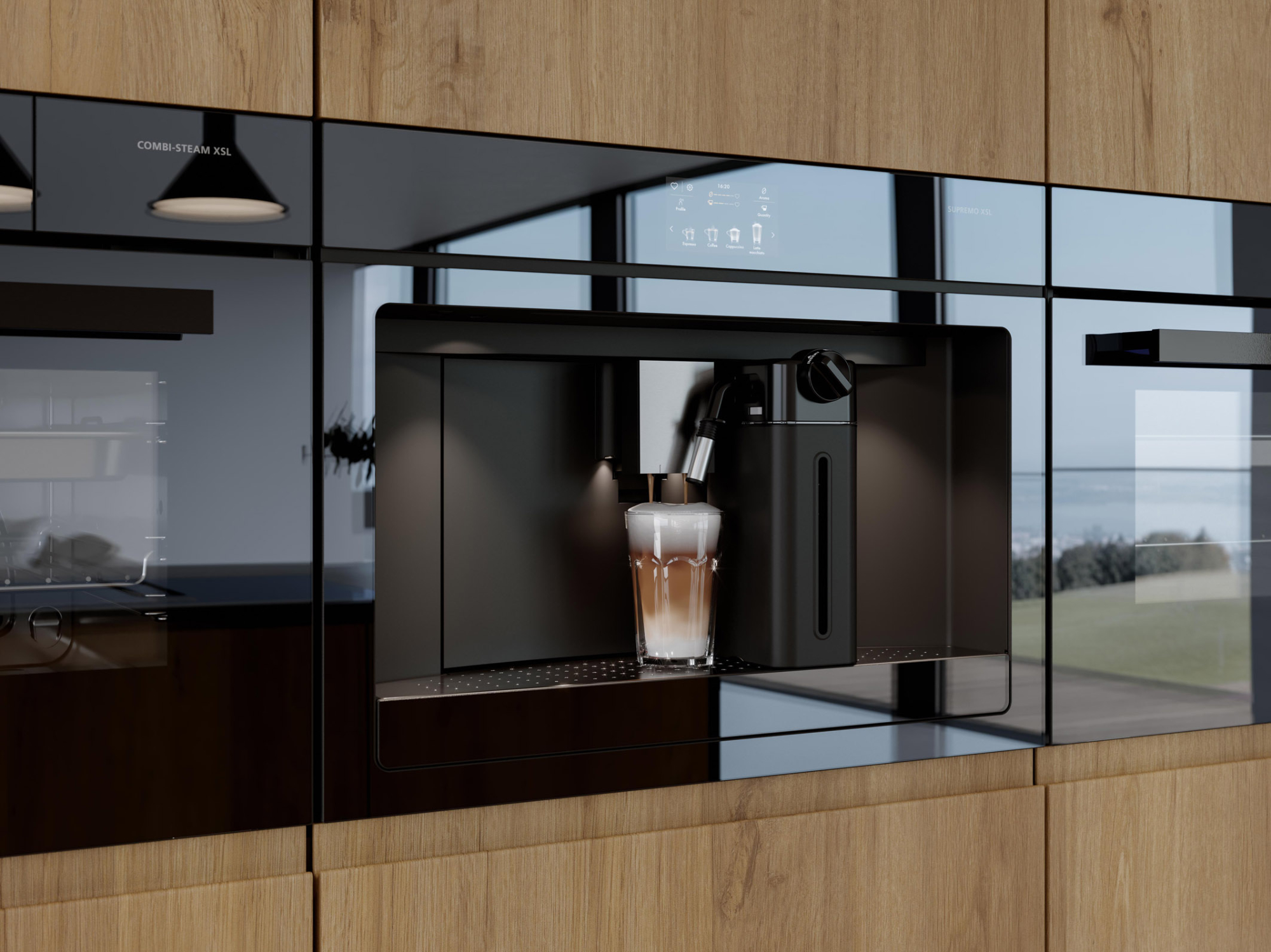 Spitzen-Einbaumodelle sind mittlerweile mit einer aktivierbaren Annäherungssensorik ausgestattet. Sie erkennt, wenn man sich dem Touchdisplay per Hand oder Körper nähert und schaltet dann das Gerät und die Beleuchtung ein. Damit das Lieblingsgetränk makellos schmeckt, reduzieren Filter den Kalkgehalt des Wassers – ebenso geruchs- und geschmacksstörende Stoffe. Und nebenbei bemerkt: Die neuen hochwertigen Premium- und Markenmodelle bereiten ihre Kaffee- und Milchspezialitäten dank hochwertiger Mahlwerke zudem auch noch angenehm leise zu – das gespräch im Lebensraum Küche muss also nicht verstummen, wenn der eingebaute Barista seiner Kernkompetenz nachgeht.