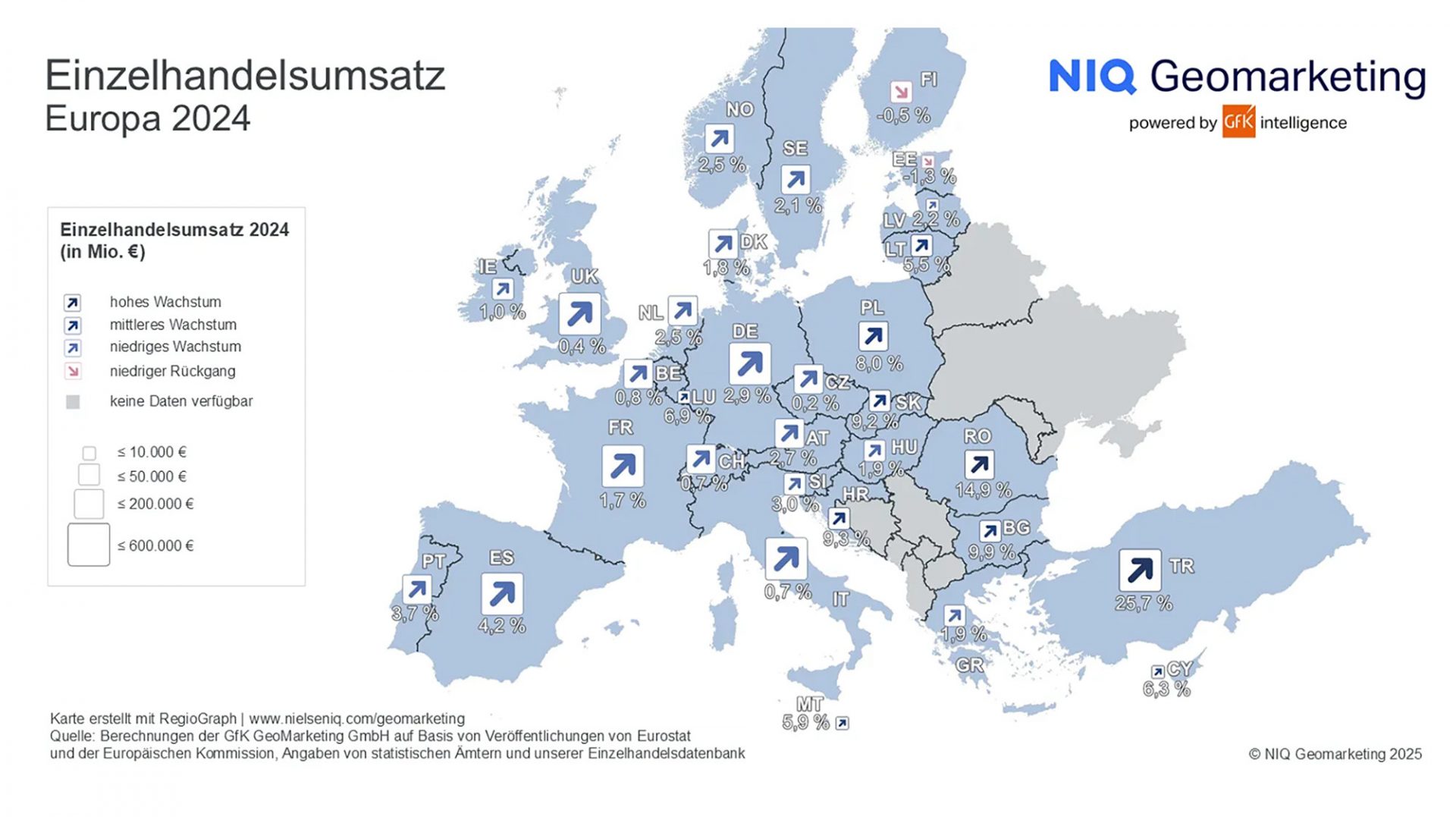 Einzelhandelsumsatz in Europa 2024: Wachstum schwächt sich ab – Dynamik in Osteuropa bleibt hoch