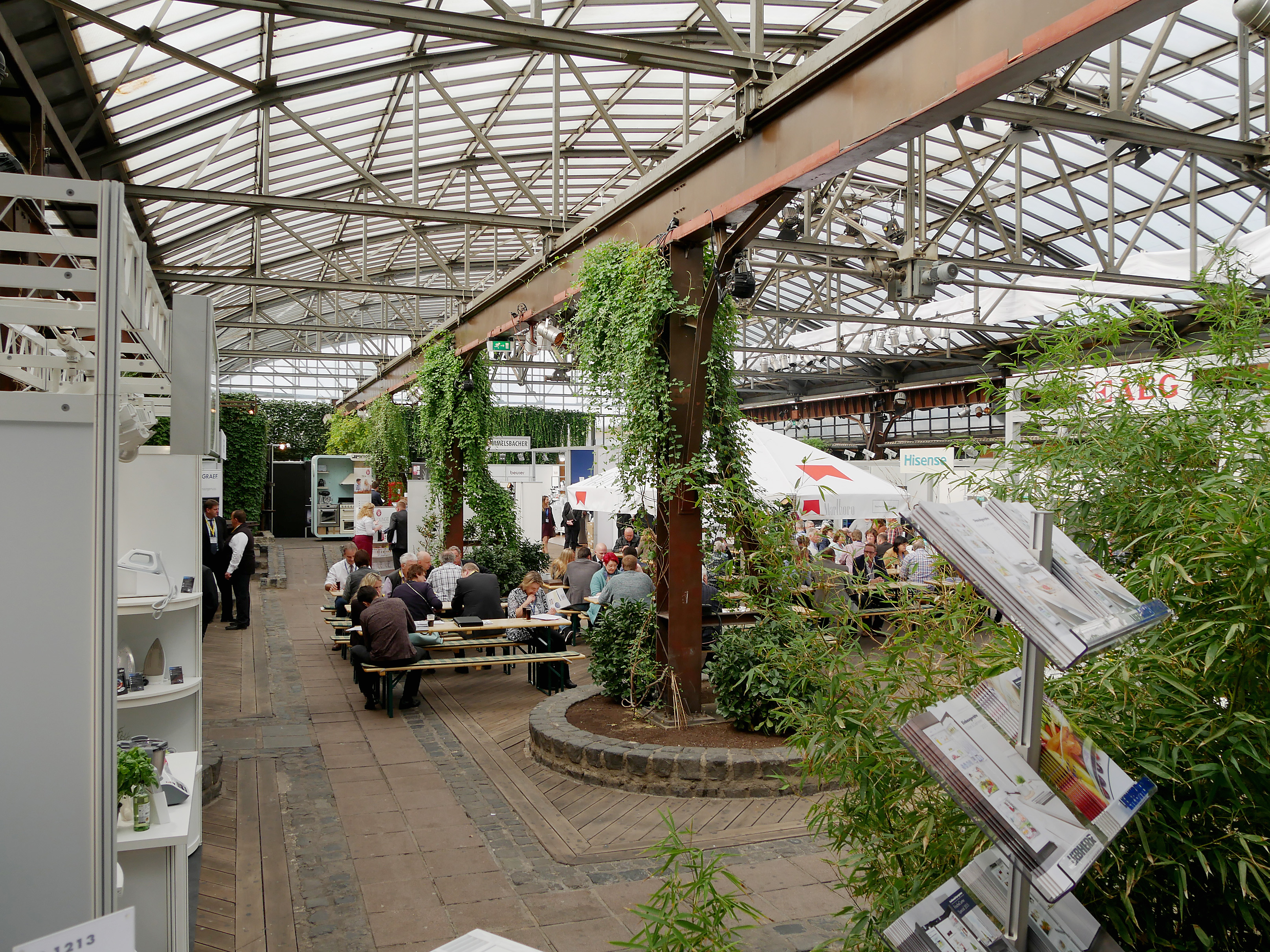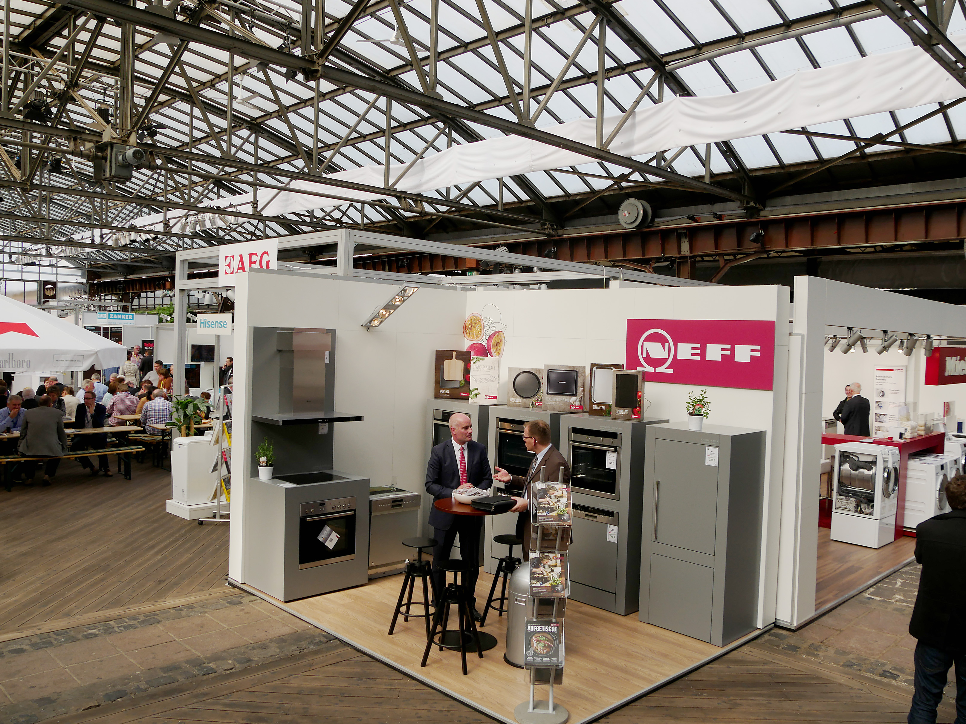 Der Girlitzweg im Kölner Nordwesten ist eine Gegend, in der man abends nicht unbedingt eine Autopanne haben möchte. Aber hier steht, eingezwängt zwischen Güterbahngleisen und morbiden Industrieruinen die Halle Tor 2. Und das ist eine der angesagtesten Locations in Köln, wenn abends die Sonne untergeht und der Beat hämmert. Für eine Hausgeräte-Messe ein ungewohntes Terrain, aber ungemein spannend und kontrastreich.