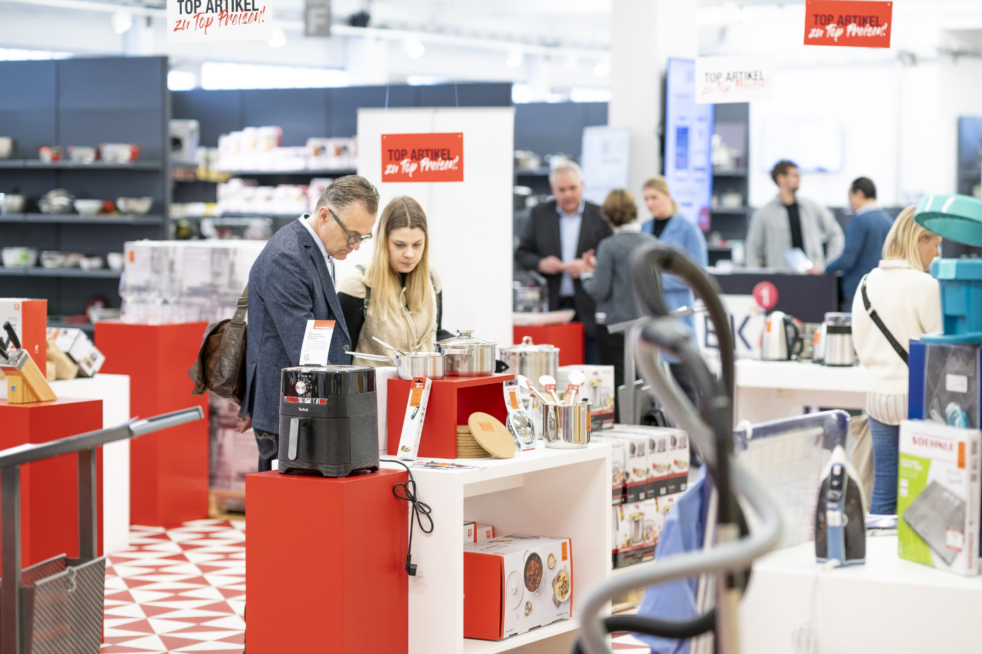 Neben den 250 Ausstellern, die ihre aktuellen Sortimente aus zwei von sechs von EK Retail vertretenen Geschäftsfeldern mitgebracht hatten, präsentierte sich das EK Großhandelslager u.a. mit den Trends 2024. Angesagt sind Themen wie „Storage“, die Fußball-EM der Männer oder das eher puristische „Black is beautiful“-Motto rund um den „Black Kitchen“-Trend. Neben kompetenter Beratung warteten attraktive Messekonditionen auf die Besucher.