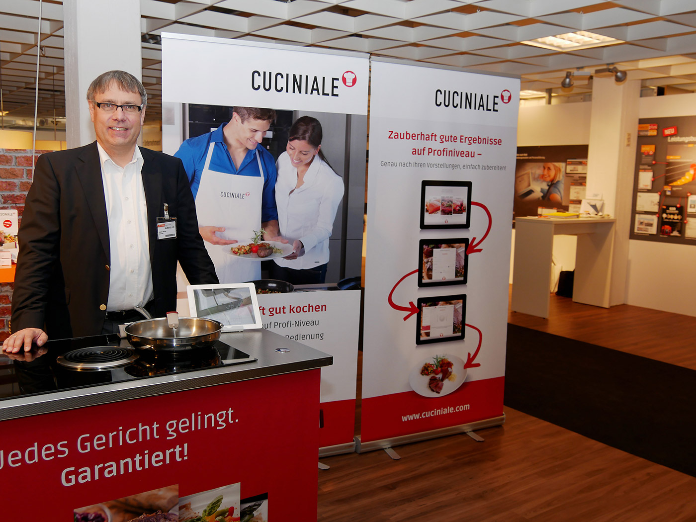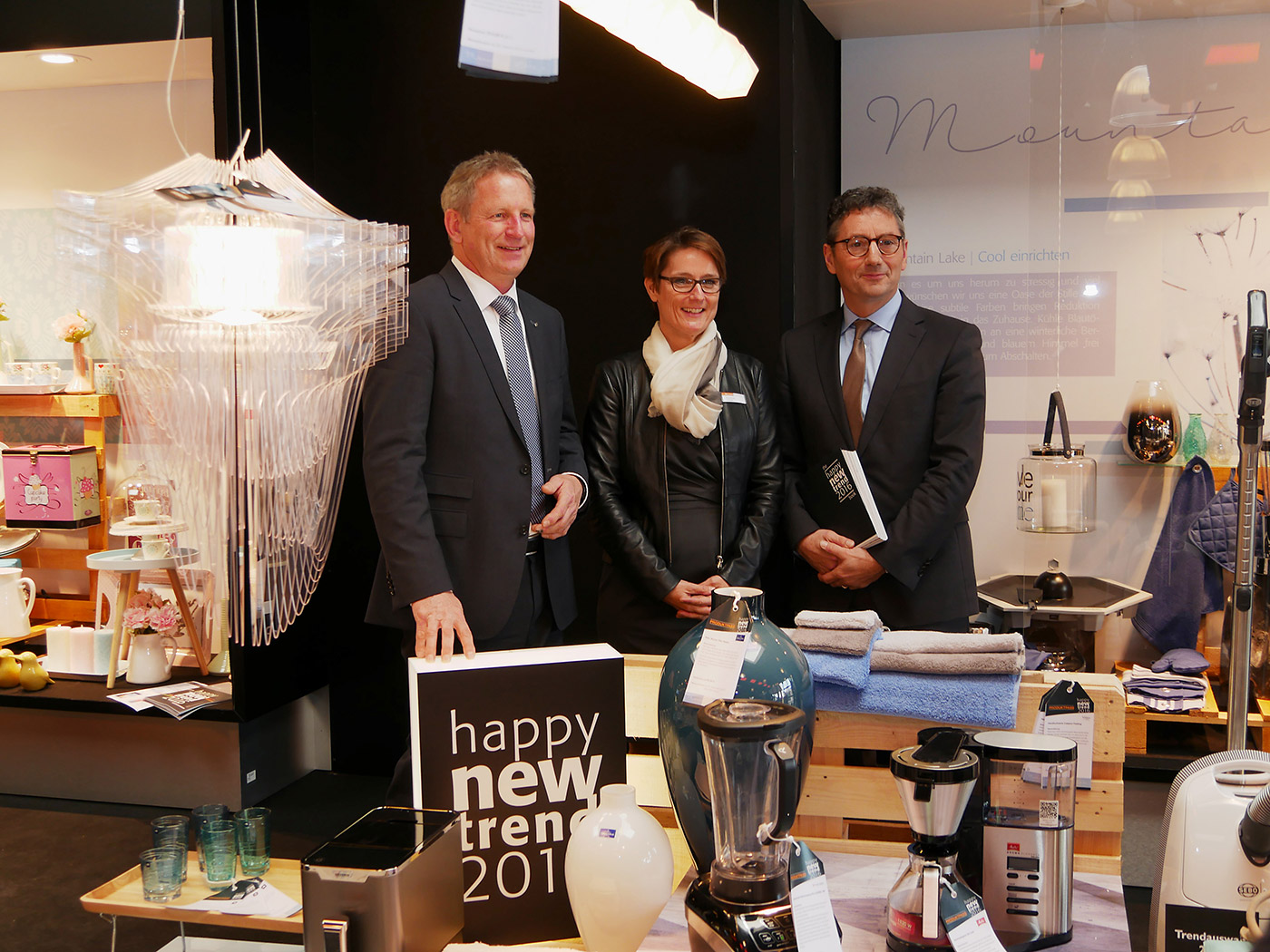 Voller Emotionen auch die Ausführungen von Lutz Burneleit. Der Leiter des Geschäftsfelds Comfort, stellte das Elektroangebot seines Bereichs unter das Motto „ Bei uns gibt es Leistungen für den Kopf, für den Bauch und fürs Portemonnaie.“ Für den „Geldbeutel“ des EK-Mitglieds gab es attraktive Sonderangebote, für den „Kopf“ die Themenwelten „Smart Home“ und „Bewusster Genuss“ und für den „Bauch“ die Wohlfühlangebote Kochen, Kaffee sowie diverse Liveaktionen. Und noch eine erfreuliche Nachricht: Zur Messe EK HOME Mitte September soll der Ausstellungsbereich Comfort/Elektro in neuem Glanz erscheinen.