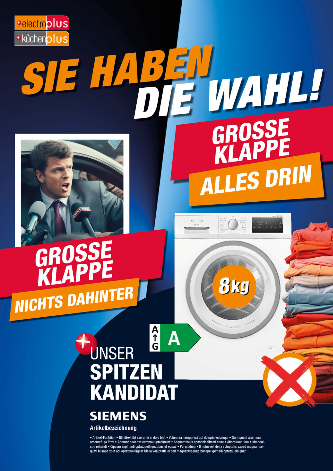 Martin Wolf, Head of Sales & Marketing Electro/Kitchen/Lighting im Geschäftsfeld EK Home klärt auf: „Wenn schon alle Bundesbürger abstimmen dürfen, starten wir eine eigene Wahlkampagne und stellen die Geräte der Industriepartner zur Wahl auf.“ Eigentlich war die Kampagne „Sie haben die Wahl!“ für den ursprünglichen Termin der Bundestagswahl im Herbst 2025 angedacht, doch das Aus der Ampel-Regierung verlangte von den stets agil handelnden EK Machern ein schnelles Handeln.