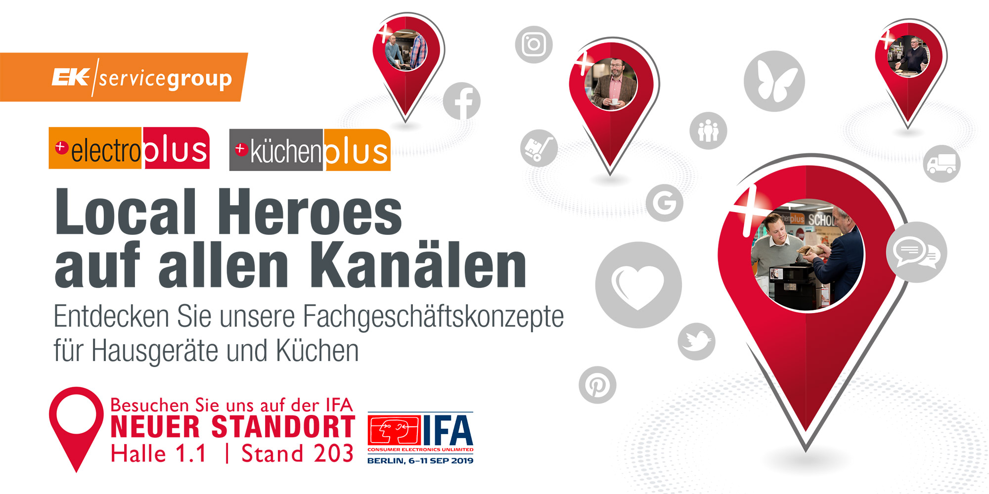 Auf einer „Rekordausstellungsfläche“ stellt das EK-Team das gesamte Leistungsspektrum der Verbundgruppe vor. Dazu zählen Exklusivgeräte führender Industriepartner, vor allem aber die markterprobten Shopkonzepte „electroplus“ und „küchenplus“. „Beide Konzepte marschieren weiter am Markt und gewinnen nicht zuletzt durch ausgeklügelte Online-Marketing-Pakete“, so Pohle. Hier arbeitet die EK eng mit der „ieQ“-Gruppe zusammen. Die Münsteraner sind – genauso wie der Hausgerätehersteller Smeg – Mitaussteller auf dem EK Messestand. Blickfänger sind hier zudem ein „echter“ Marktplatz, stellvertretend für den sich im Aufbau befindenden Online-Markplatz „electroplus“, sowie eine außergewöhnliche Gestaltungsvariante des Zukunftsthemas „Nachhaltigkeit“.