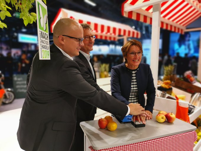 Die EK/servicegroup hat die Vorbereitungen für den Start ihres neuen electroplus-Marktplatzes abgeschlossen. Der EK Vorstandsvorsitzende Franz-Josef Hasebrink, EK Vorstandsmitglied Susanne Sorg und Jochen Pohle, Bereichsleiter der Business Unit EK Home, drückten während der IFA 2019 den symbolischen roten „Startknopf“ zur Eröffnung des neuesten Online-Marktplatzes.