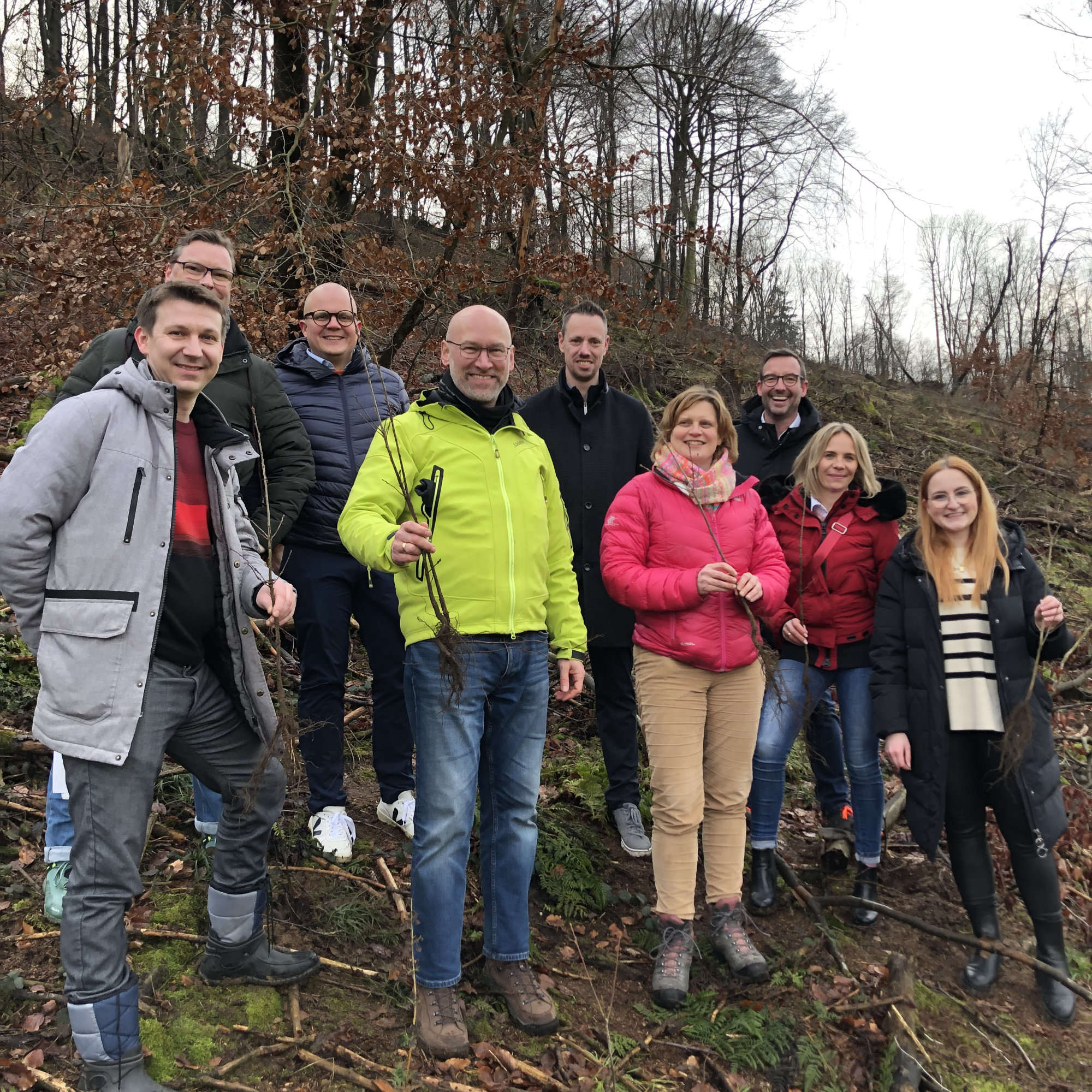 Anfang Februar kamen die Baumsetzlinge dann in die Erde. In enger Zusammenarbeit mit der lokalen Aufforstungsgesellschaft „climatebloom“ wurden sie Teil eines neuen, naturnahen und klimastabilen Mischwaldes im Teutoburger Wald. In den letzten beiden Jahren wurden hier im Anschluss an die früheren „Green Friday“-Aktionen der EK bereits 17.900 Bäume gepflanzt. Mit der aktuellen „Ausbeute“ wuchs diese Zahl unter tatkräftiger Mithilfe aus dem EK-Team auf insgesamt über 27.000 Bäume und 109.000 qm Waldfläche.