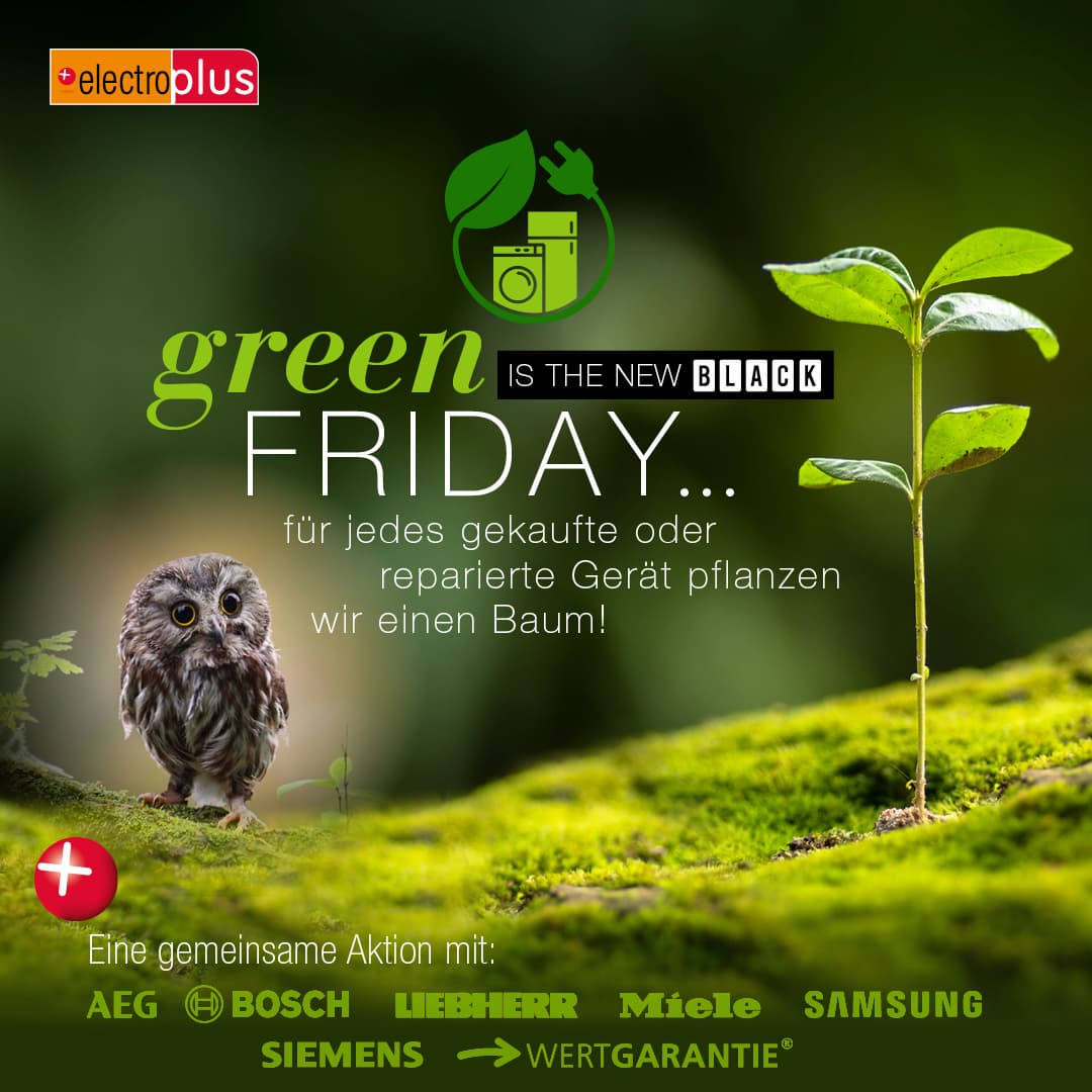 Mit dem „Green Friday“ hat die EK eine Aktion ins Leben gerufen, die den Abverkauf vieler Artikel mit der Neupflanzung eines Baumes verbindet. Ziel war es, vom 20. bis 29. November gemeinsam mit den Partnern aus Handel und Industrie sowie den Kunden vor Ort einen nachhaltigen Beitrag fürs Klima zu leisten. In vorderster Linie mitgemacht haben dabei die gut 60 electroplus küchenplus Händler, rund 50 Happy Baby-Partner, die Häuser der Fachgruppe licht+concept und nicht zuletzt die Händler, die sich unter der Konzept-Flagge „Starker Fachhandel“ in der EK Gruppe vereinigen.