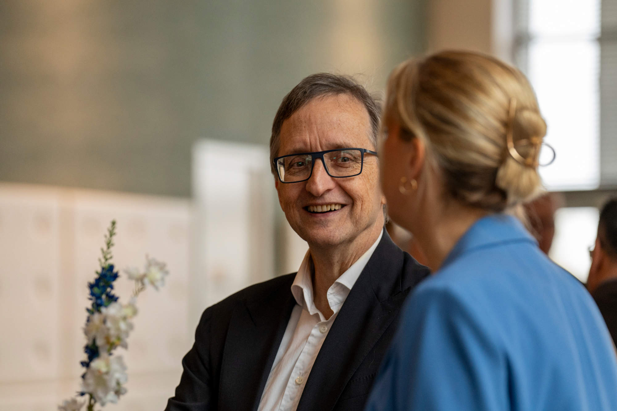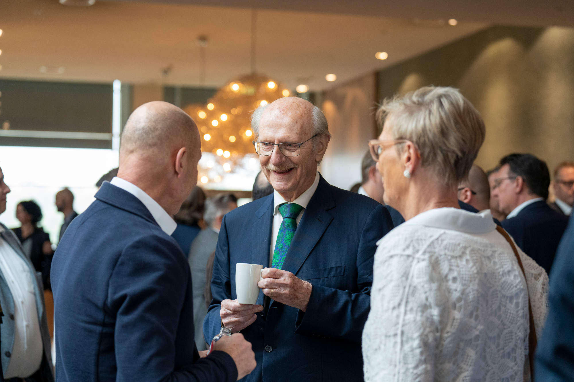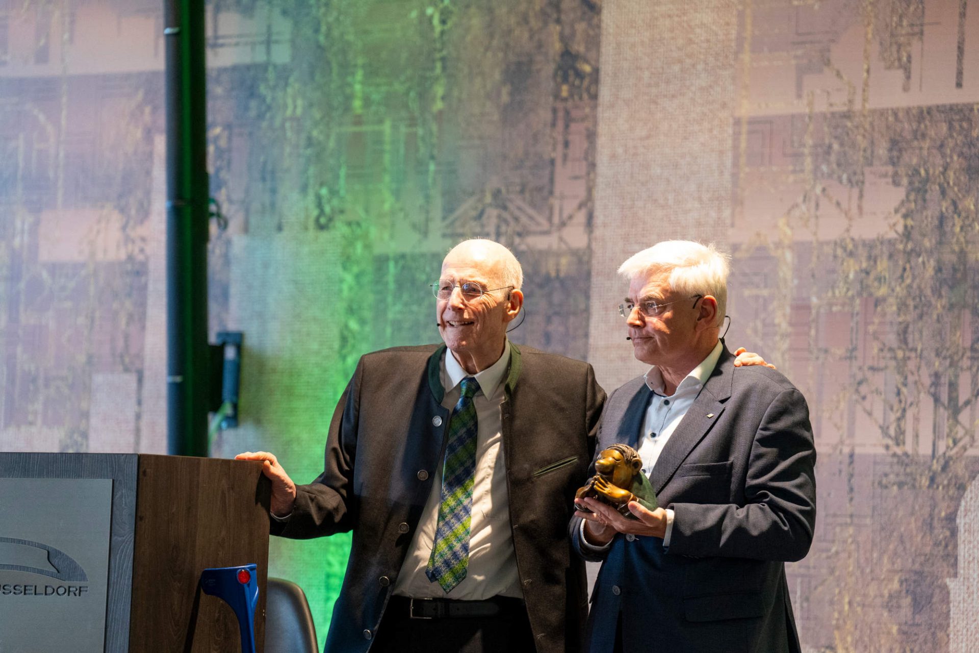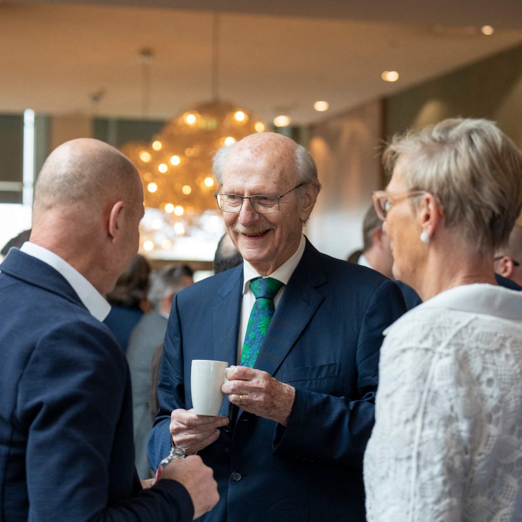 Die kurzweilige Laudatio hielt der inzwischen 85 Jahre alte Hartmut Haubrich, der Gründer der Verbundgruppe, der Trautmann seit 64 Jahren, also seit seiner Geburt kennt, pflegten doch die Eltern beider Familien eine „enge Beziehung“ miteinander. Haubrich: „Beim dritten oder vierten Glas ‚Schumacher Altbier‘ habe ich Karl Trautmann nach dem Wasserball-Training vor fast 35 Jahren vorgeschlagen, was Vernünftiges mit großem Entscheidungsspielraum zu machen.“