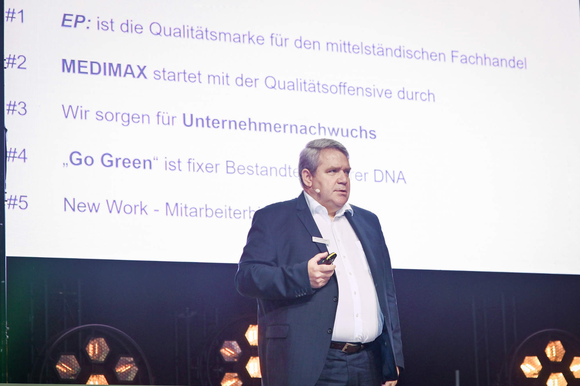 Sein Vorstandskollege Friedrich Sobol knüpfte da thematisch an und präsentierte den anwesenden Mitgliedern, Industriepartnern und Mitarbeitern die aktuellen Entwicklungen der Verbundgruppe sowie zukünftige Strategien für die beiden Marken EP: und Medimax. Beide Geburtstagkinder übrigens.