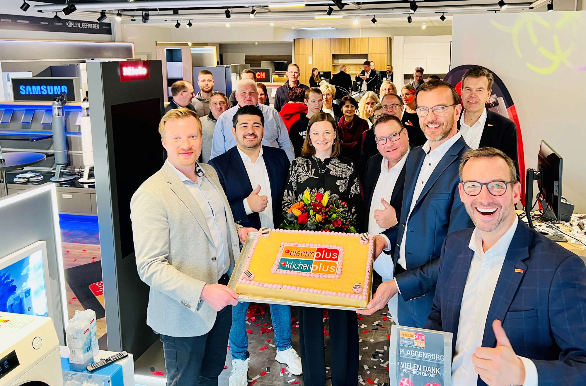 Am Stammsitz des Familienunternehmens freute sich Matthias Plaggenborg vergangene Woche Mittwoch über den gelungenen Umbau seines modernen Markenstores, den er gemeinsam mit dem electroplus küchenplus-Team der Bielefelder EK realisiert hat.