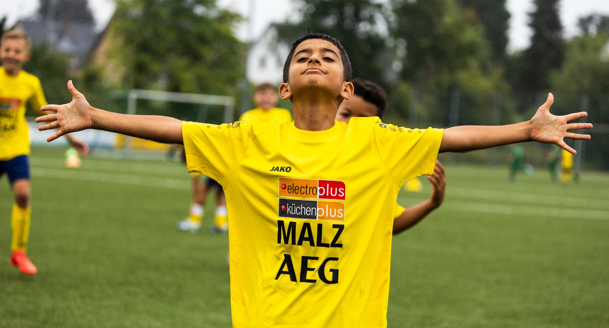Die Trikotaktion bringt diesen Nachwuchskicker zum Jubeln.