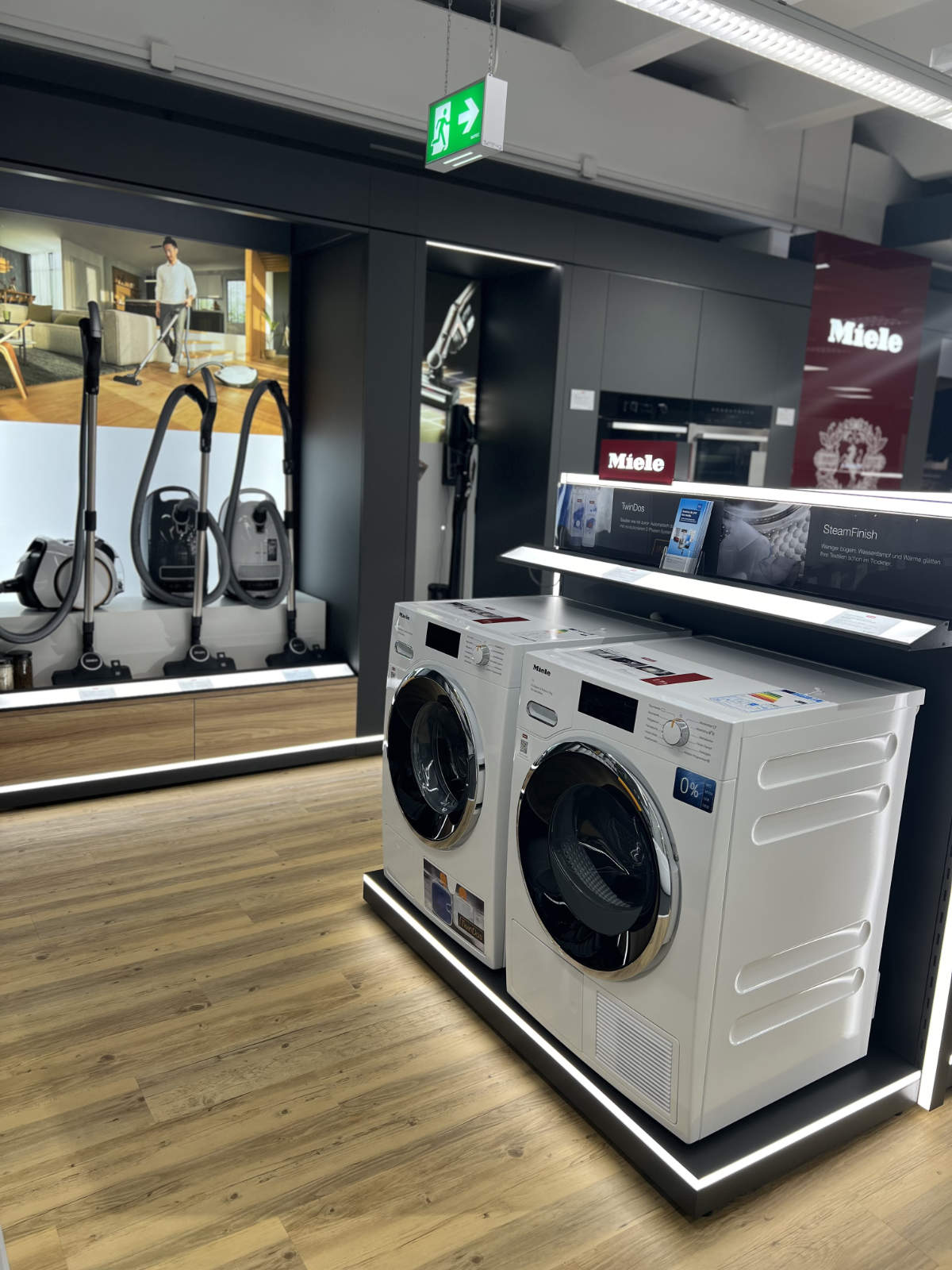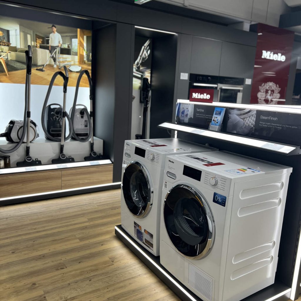 Erfahrungen im Hausgeräte-Segment hatten die Hessen schon vorher reichlich gesammelt, aber jetzt startet C.C. Curtze auf der komplett neu gestalteten Konzept-Fläche voll durch. Auf 300 qm wurden alle markterprobten electroplus-Komponenten umgesetzt. Die nach Themen strukturierte Präsentation der hochwertigen Großgeräte (Waschen & Trocken, Backen & Kochen etc.) mit Premium-Marken wie Miele und Liebherr, dazu AEG, Samsung und Siemens, sorgt für klare Orientierung, das stylische Store-Design mit Highlight-Möbeln und modernster LED-Beleuchtung für emotionale Einkaufsmomente.