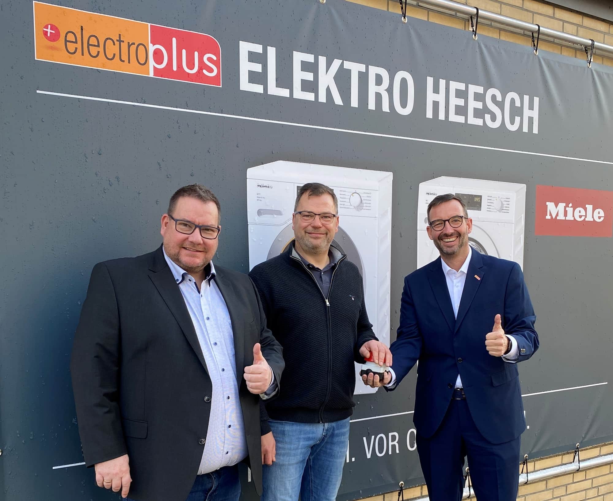 Unser Foto zeigt v.l.n.r.: EK Regionalleiter Rainer Herold, Inhaber Andreas Heesch und Martin Wolf, Leiter Vertrieb und Marketing Elektro/Küche/Licht.