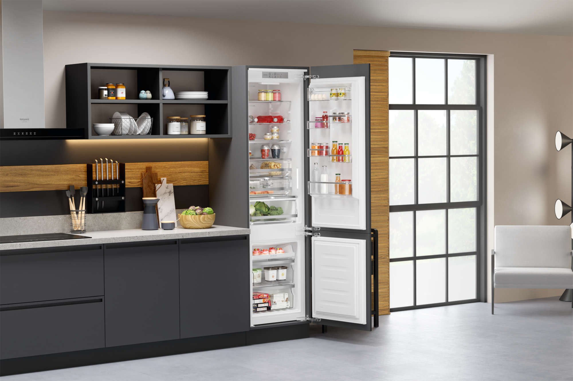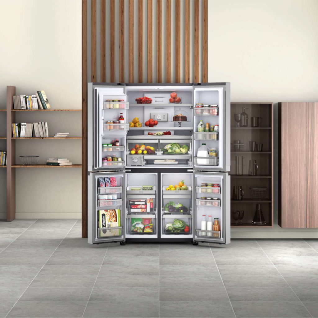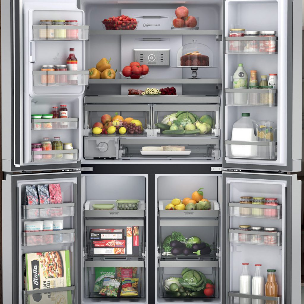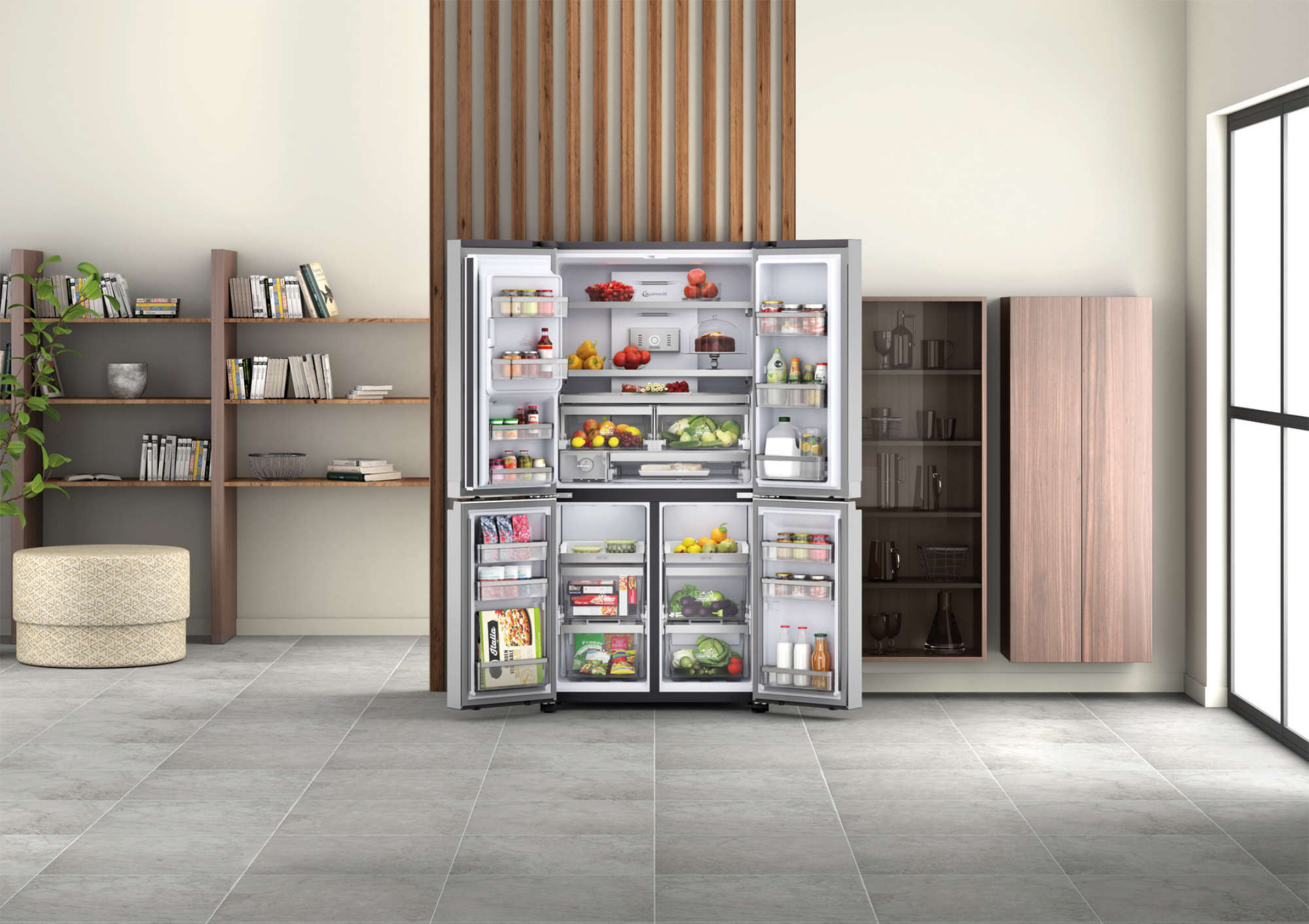 Eine besonders nachhaltige Aufbewahrung finden die Verbraucherinnen und Verbraucher in den Kühl-/Gefrierkombinationen der Total NoFrost-Reihe. Das Food Care System, eine perfekte Synergie innovativer Technologien, sorgt hier für eine optimale Lagerung sämtlicher Lebensmittel. Die Kühl-/Gefrierkombination Active Quattro bietet zudem eine extragroße Fläche: Mit bis zu 591 Litern Lagerkapazität bietet der Viertürer ausreichend Platz für so manchen Großeinkauf.