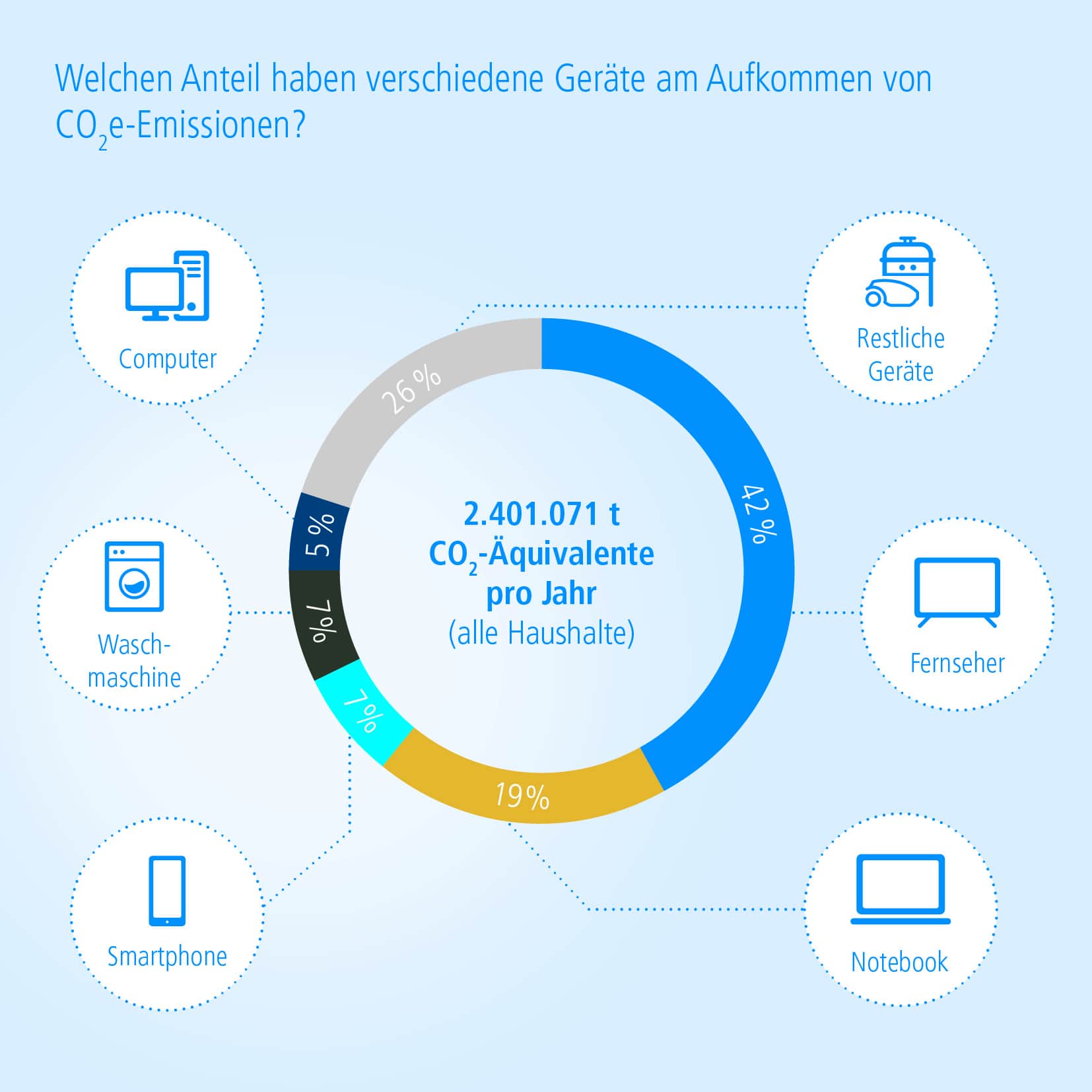 Verkehr, Landwirtschaft oder der Gebäudesektor stehen bei den Bemühungen zur Emissionsminderung oft im Fokus. Doch auch in jedem Wohnzimmer, jeder Küche oder im Büro entstehen vermeidbare CO2-Emissionen: Durch die Entsorgung defekter Geräte und Neuanschaffung gleicher Geräte werden jährlich pro Haushalt 57,4 kg CO2 verursacht, die mit der Produktion der jeweiligen Neugeräte einhergehen.