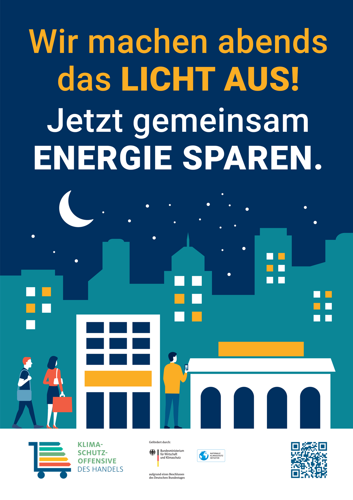 Die passende Kampagne zum Energiesparen im Handel hat die Klimaschutzoffensive des Handels auf Initiative des Handelsverbandes Nordrhein-Westfalen ins Leben gerufen: Durch geschlossene Türen und reduzierte Beleuchtungszeiten bei Nacht soll so bereits ein erheblicher Teil an Energie und Energiekosten eingespart werden.