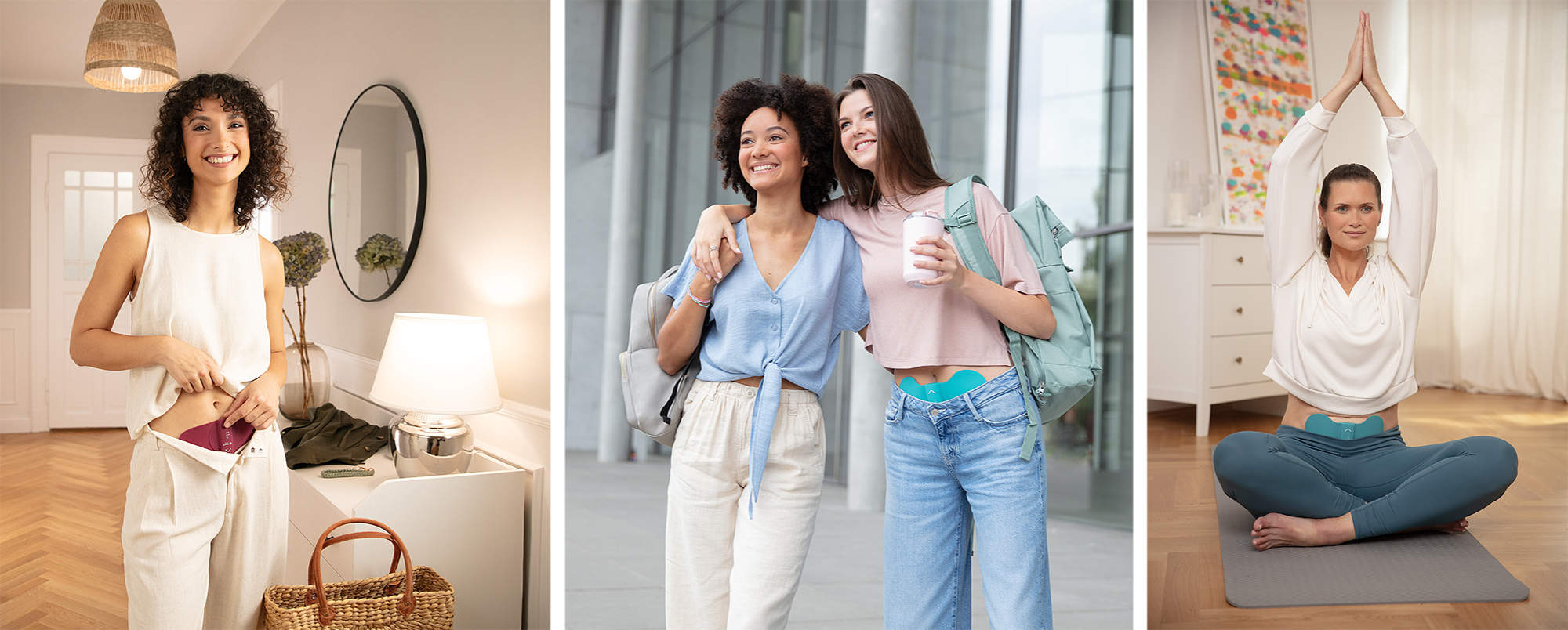 Die Kombination aus TENS-Technologie mit wohltuender Wärme sorgt für eine wohltuende und medikamentenfreie Linderung von Unterleibsschmerzen. Flexibel und bequem passen sich die Produkte an die Körperform der Frau an. So können diese diskret unter der Kleidung getragen werden. Das EM 55 bietet durch seine größere Form und Wärmefläche ein Plus an Wärme.
