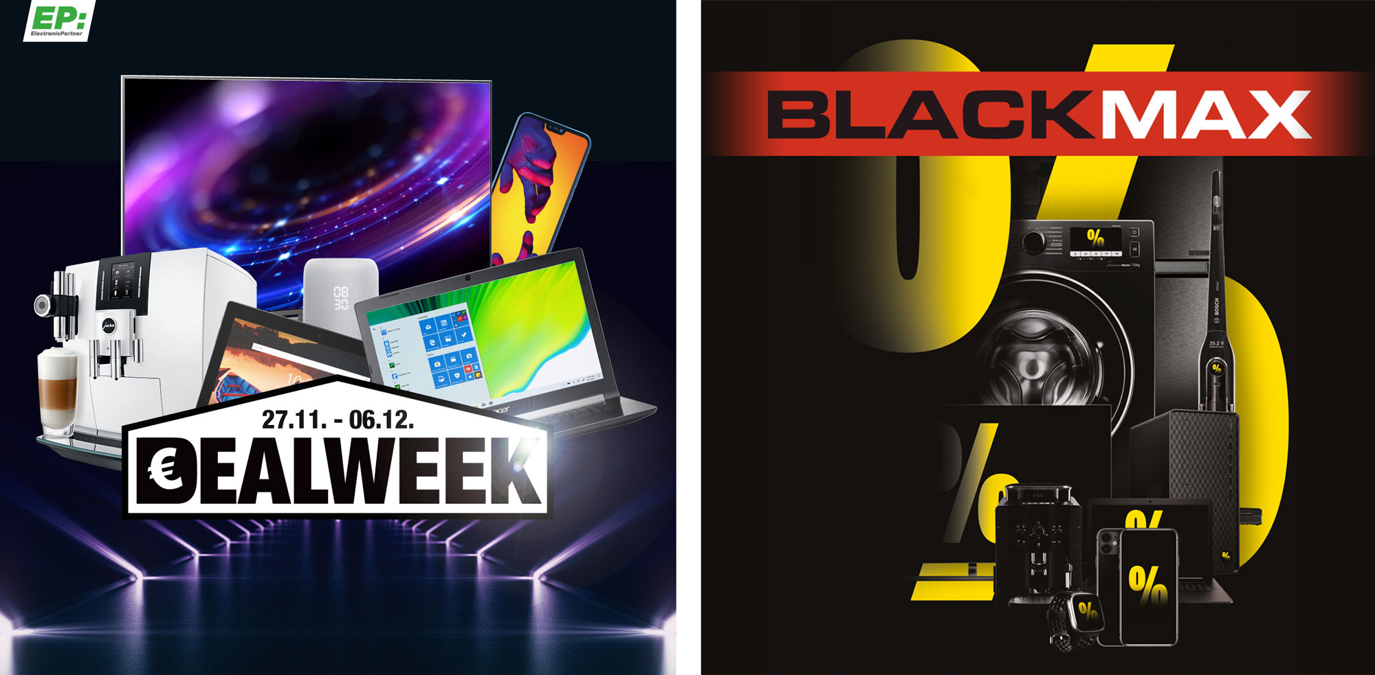 Bei Medimax profitieren Kunden unter dem Motto „Blackmax“ vom noch bis zum 5. Dezember rund zwei Wochen lang von attraktiven Angeboten. Die EP:Dealweek der Markenhändler findet vom 27. November bis zum 6. Dezember statt. Beide Aktionen werden vor allem über die jeweiligen Online-Shops ausgespielt. Doch auch vor Ort profitieren die Verbraucher von Angeboten in allen Warenbereichen. Der Mix aus stationären Aktionen und Web-Angeboten soll für eine enge Verzahnung zwischen den einzelnen Vertriebskanälen sorgen und sowohl Stammkunden als auch neue Zielgruppen ansprechen.