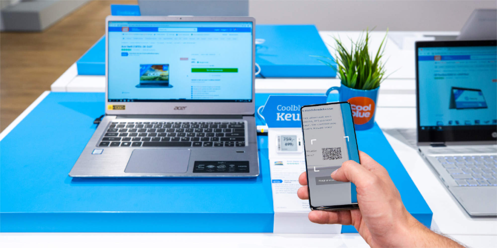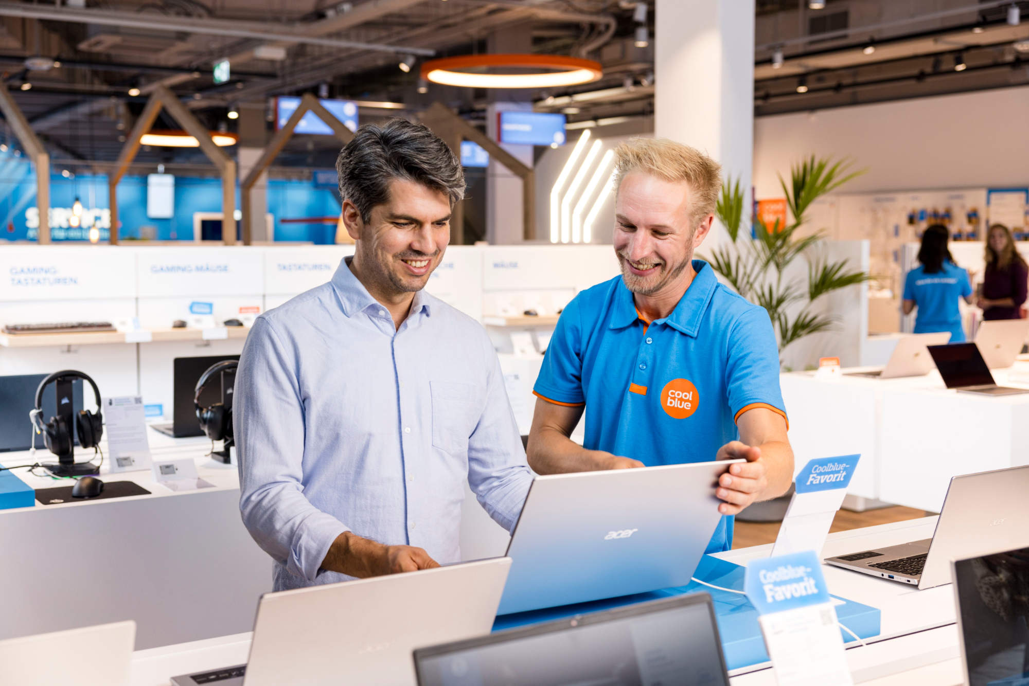 Zudem unterstützen informative Beratungselemente und digitale Services bei der Kaufentscheidung. So stehen smarte Funktionen über die Coolblue App, wie ein intuitiver Produktvergleich per QR-Code im Store, Virtual-Reality-Anwendungen zur besseren Vorstellung von Geräten im eigenen Zuhause sowie ein optionaler In-Store-Modus zur Verfügung. Letzterer informiert bei gebuchten Beratungsterminen automatisch das zuständige Verkaufsteam über die Ankunft der Kundschaft – für eine nahtlose Beratung ohne Wartezeiten.
