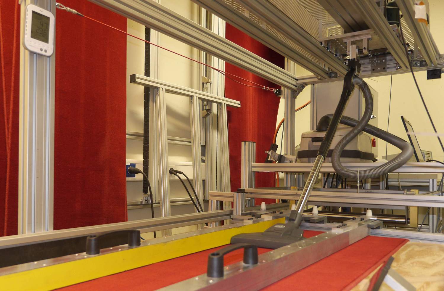 Brechende Halterungen im Messaufbau, weil sich zur besseren Effizienz bei der Messung umkonstruierte Saugdüsen zu stark an den real exisitierenden Teppich ansaugen und damit Schub- und Hebelkräfte über Gebühr erhöhen – bis zu drei Prozent Unterschied des gleichen Messaufbaus, abhängig davon, an welcher Stelle des Messteppichs die aktuelle Messung gerade abläuft – das hat was von Slapstick. Nicht zu vergessen der Wunsch nach einem täglichen, auf EU-Rezept gelieferten Steak, wenn sich die Saugdüse mit 40 statt mit 30 Newton an den Boden ansaugt – und beim Zurückziehen hilflos über den wertvollen Teppich des Versammlungssaals hoppelt. Welch Wohltat ist dann der Bedienkomfort einer einfach gleitenden Saugbürste mit mindestens der gleichen Reinigungswirkung – auch wenn sie im Labor „versagt“.