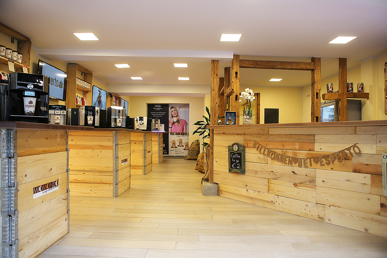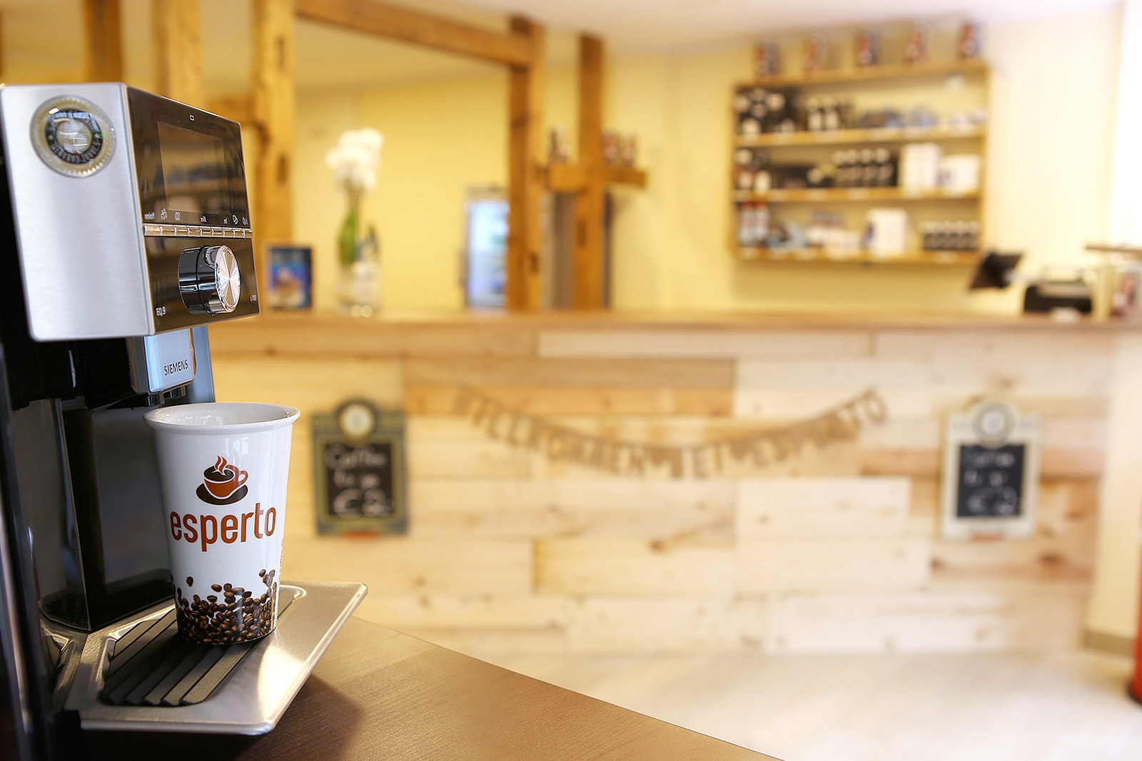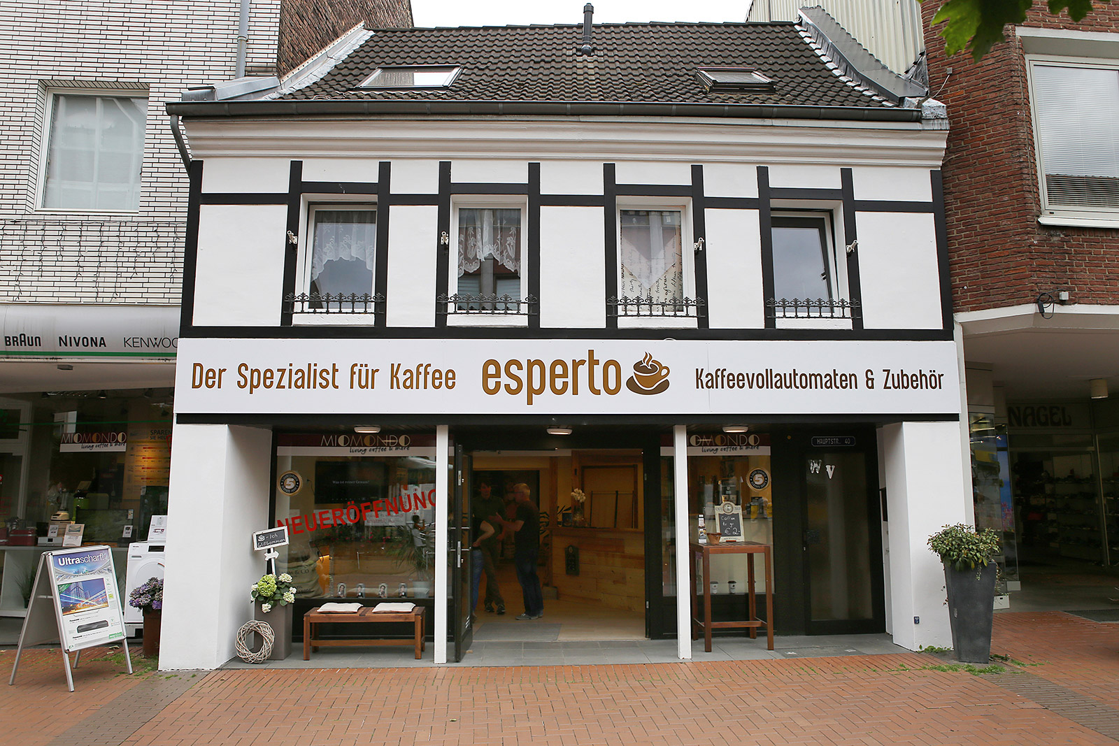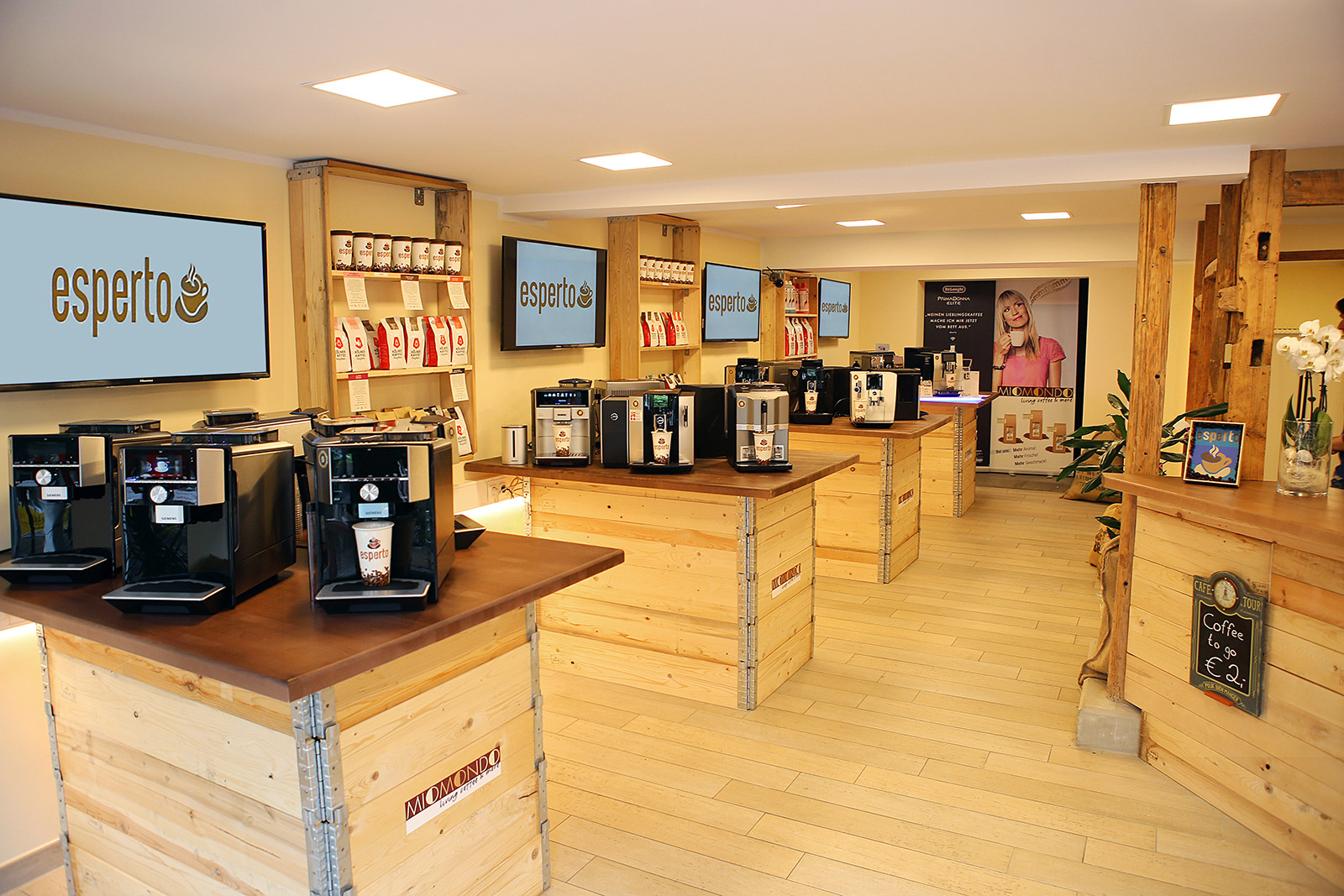 „esperto“ klingt nach Espresso und Experten, und genau diese Assoziation ist gewollt. Denn sowohl Caspari als auch Geuer sind in der Handelsbranche keine Unbekannten. Geuer betreibt direkt nebenan in fünfter Generation das Familienunternehmen EP: Geuer (zudem einen Miele Markenstore in Frechen-Königsdorf), Caspari war jahrelang Prokurist bei Eisenjansen, dort einer der maßgeblichen Ideengeber für „Miomondo“, ein immer erfolgreicheres Konzeptpaket zur optimalen Kaffee-Vermarktung. Wo also in Frechen „esperto“ draufsteht, ist jede Menge Miomondo drin.