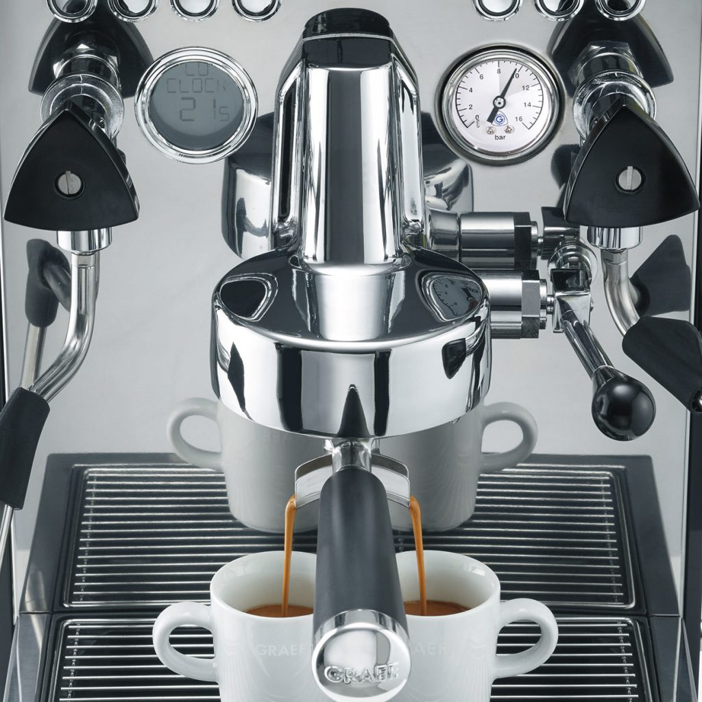 Vorbei. Nach intensiven, zweijährigen Analysen wurde ein komplett neues und ganzheitliches Konzept für den Kaffeenachschub ausgearbeitet. In Arnsberg trifft jetzt italienisches Design auf deutsche Technik. Bei der Entwicklung der neuen Siebträger wurde keine Dichtung, kein Rädchen, kein Bauteil auf dem anderen gelassen. „Es gab noch viel zu verbessern, an der Technik vor allem, aber auch am Design“, erklärt uns Firmenchef Hermann Graef.